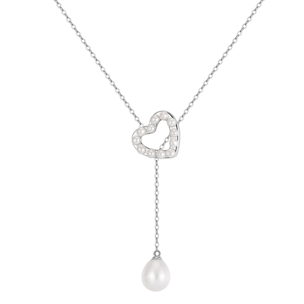 925 Sterling Silver Freshwater Pearl Heart Lariat Drop Necklace 80500002