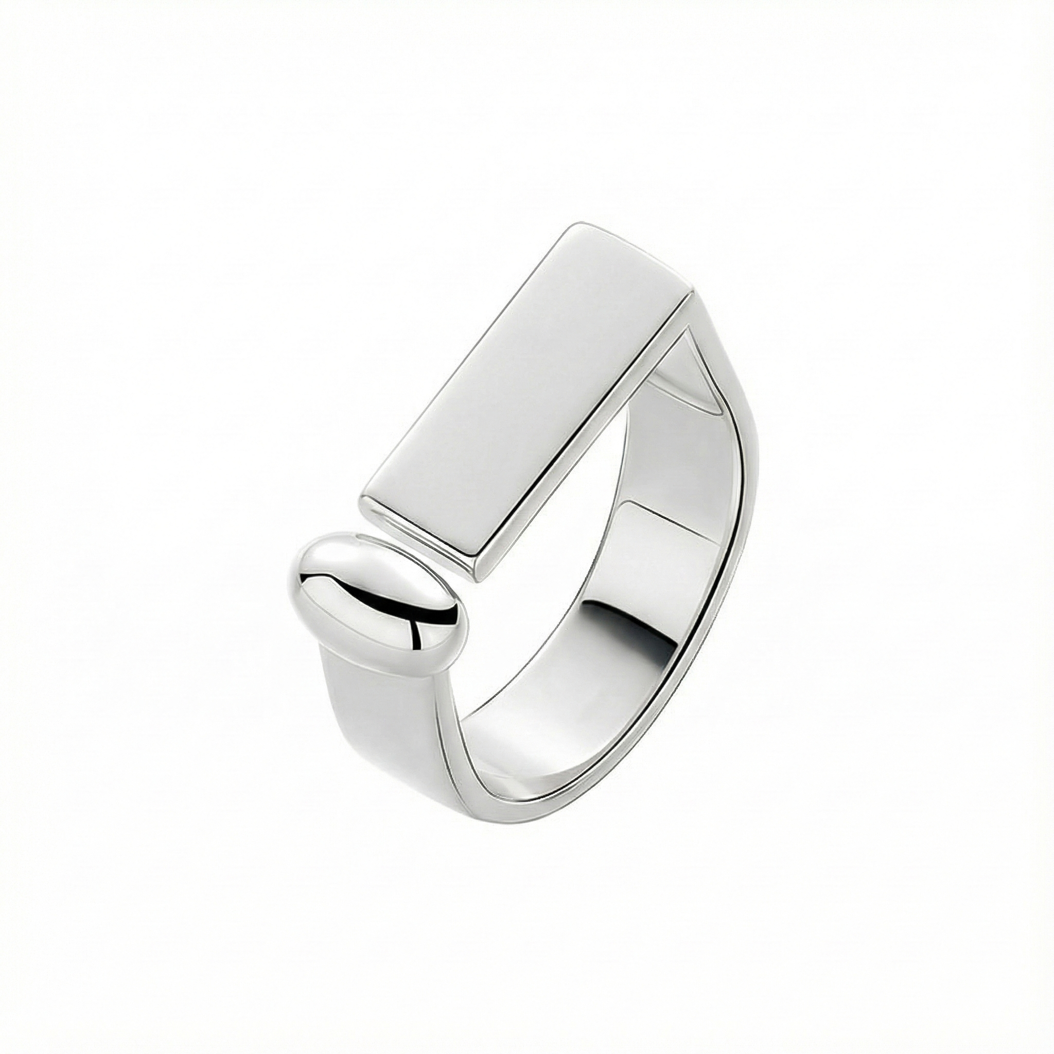Stock the latest in sculptural jewelry with our Wholesale 925 Sterling Silver Geometric Bar Adjustable Ring. This SKU capitalizes on the "Modern Art" jewelry trend, offering a substantial, high-quality feel with its wide band and geometric elements. The open-shank design is a significant advantage for retailers, as it provides a "One Size Fits Most" solution, reducing the need to stock multiple ring sizes. Manufactured from solid S925 sterling silver, it is a high-margin statement piece perfect for fashion-forward boutiques.