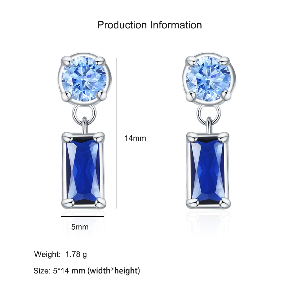 These 925 sterling silver geometric earrings combine a contemporary silhouette with timeless sophistication. The round light-blue zircon top is paired with a rectangular deep-blue sapphire-style stone, creating a stunning contrast of shapes and tones. Perfect for formal events, dinner dates, or stylish everyday wear, these earrings add a refined sparkle that flatters any look. Crafted from hypoallergenic sterling silver, they ensure lasting shine and comfort.