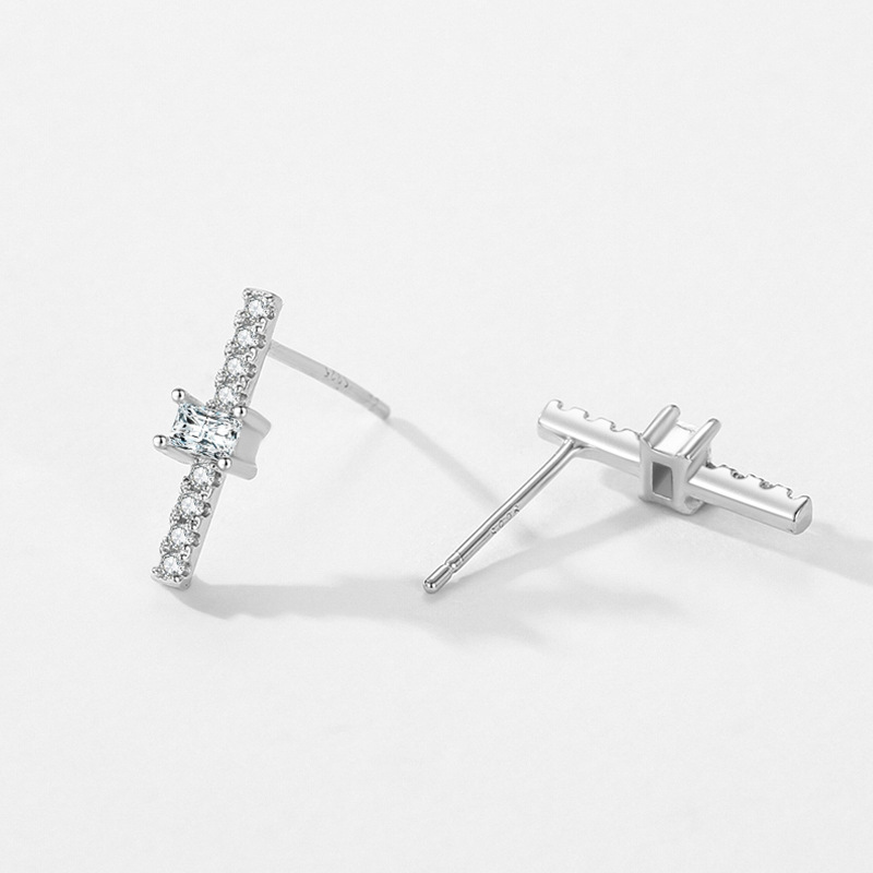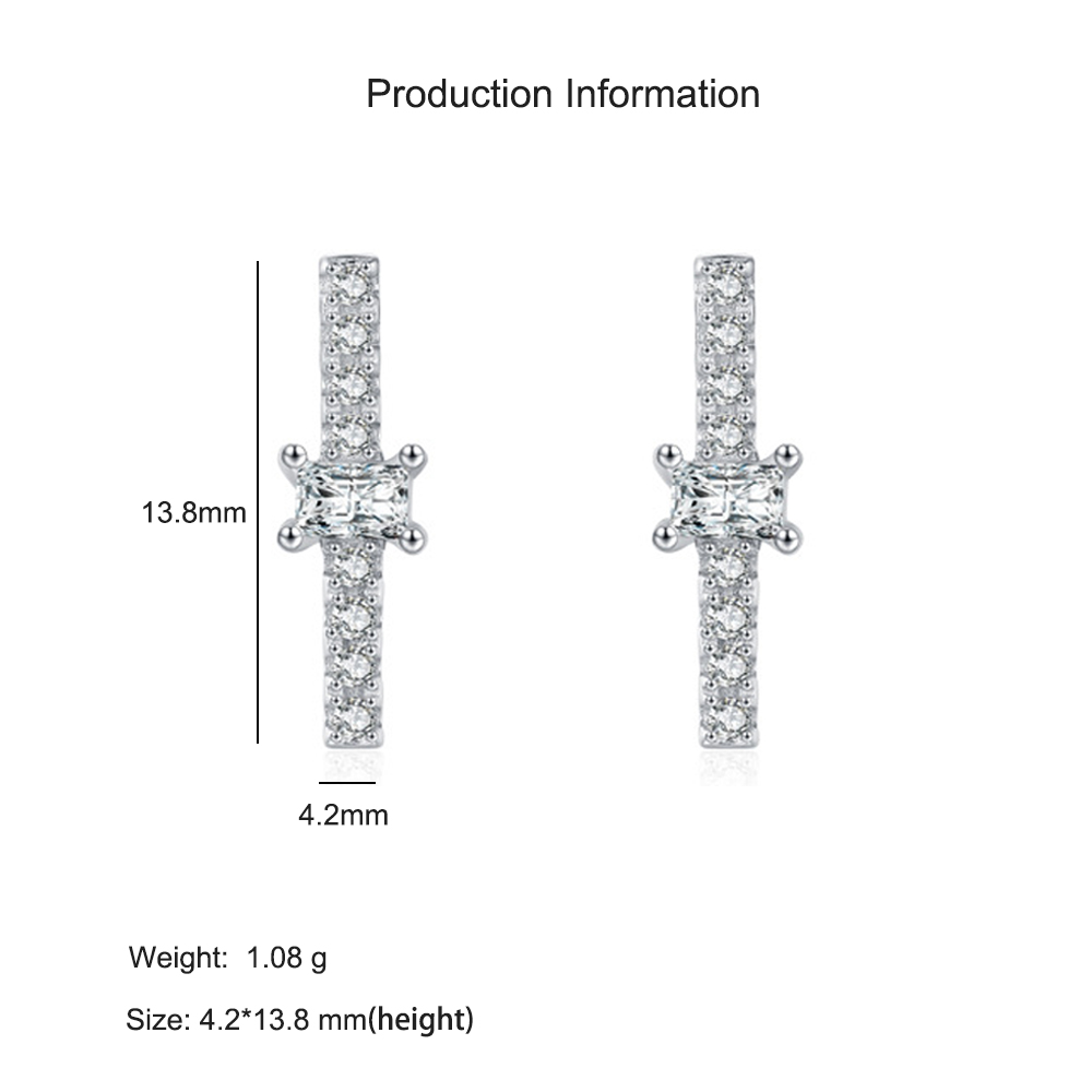 925 Sterling Silver Geometric Minimalist Zircon Stud Earrings 40200732 - image1925 Sterling Silver Geometric Minimalist Zircon Stud Earrings 40200732 - image2