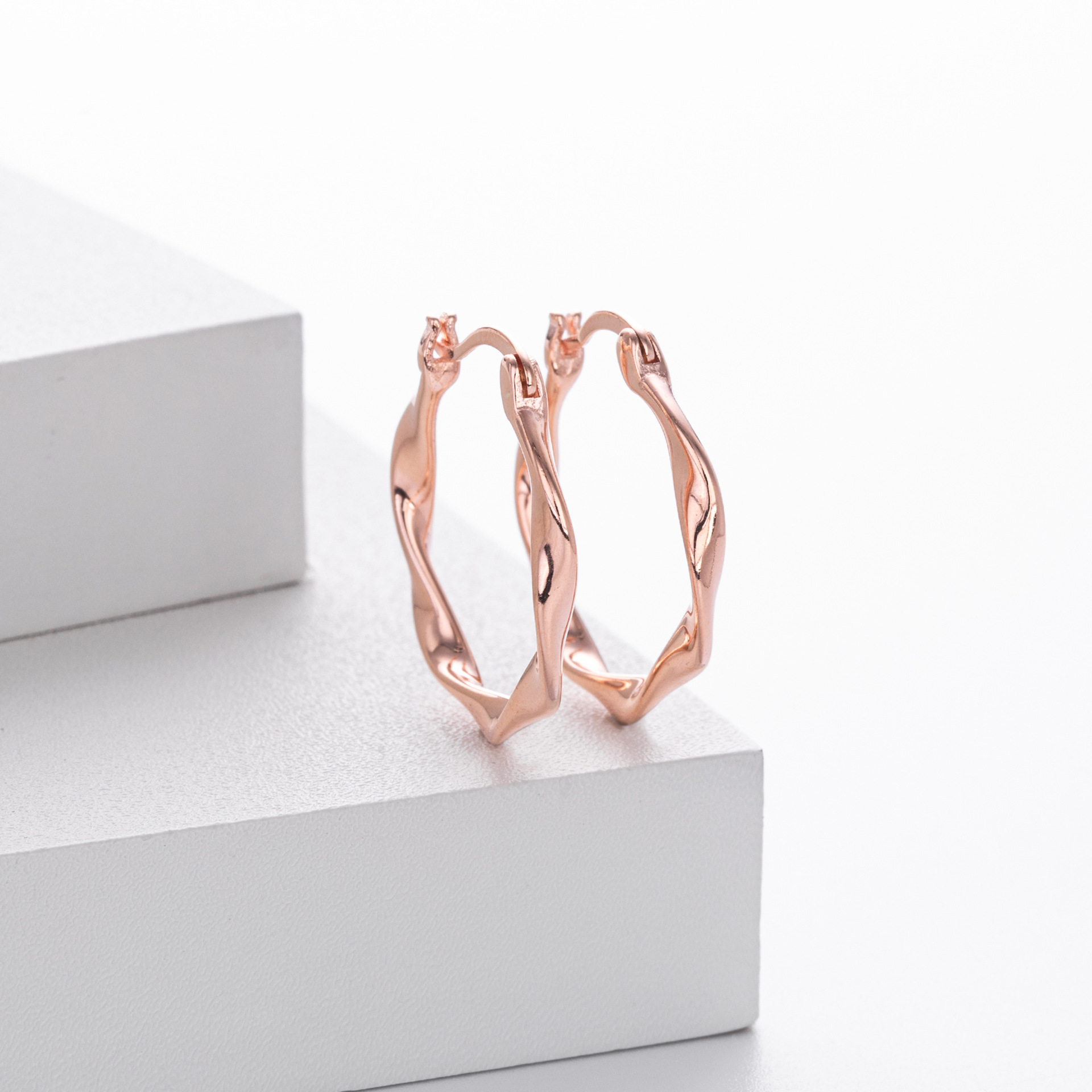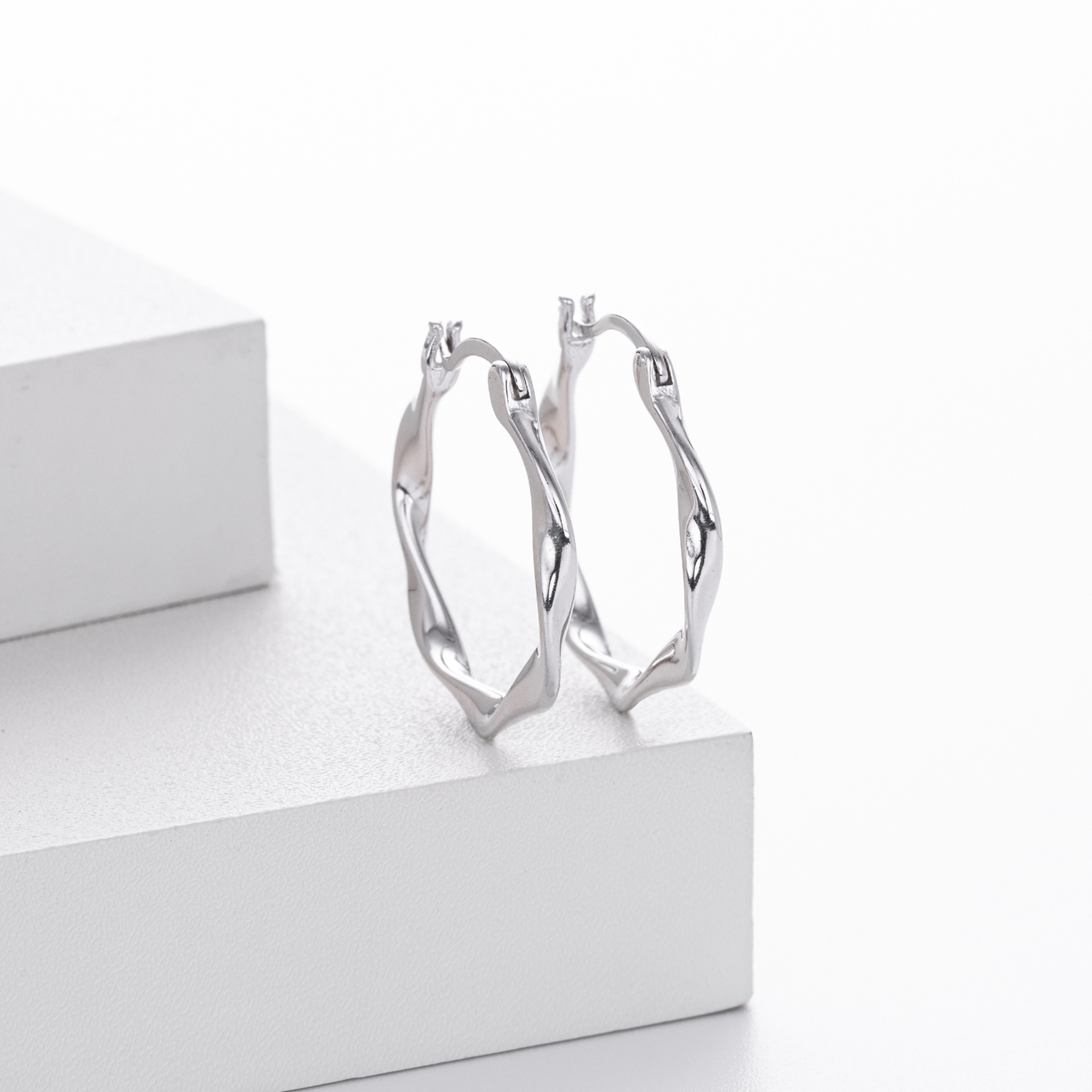 Inject modern flair into your jewelry offering with our Wholesale 925 Sterling Silver Geometric Twisted Hoops. The twisted or "Mobius" style hoop is a contemporary update to the classic sleeper, appealing to customers seeking unique, sculptural pieces. This SKU features a high-polish finish and a fluid shape that fits seamlessly into minimalist and artsy collections. Manufactured from solid S925 sterling silver, they ensure quality and durability for your catalog.