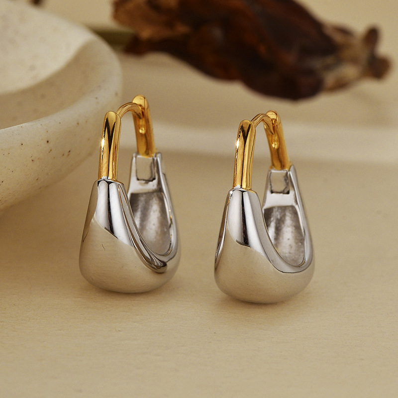 Source a trending, high-impact inventory item with our 925 Sterling Silver Geometric Two-Tone Huggie Hoop Earrings. This design is highly marketable, capitalizing on the popularity of geometric jewelry and the highly sought-after contrast two-tone aesthetic, which appeals to customers seeking versatile pieces that mix gold and silver. The bold shape and secure huggie hoop style ensure strong aesthetic value and consumer appeal. Crafted from authentic 925 sterling silver, this piece offers reliable quality and strong retail margins. These are excellent, reliable, fast-selling staple pieces for bulk purchase. Available for competitive wholesale pricing.