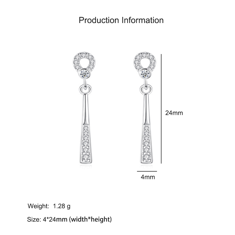 925 Sterling Silver Geometric Zircon Drop Stud Earring 40200719
