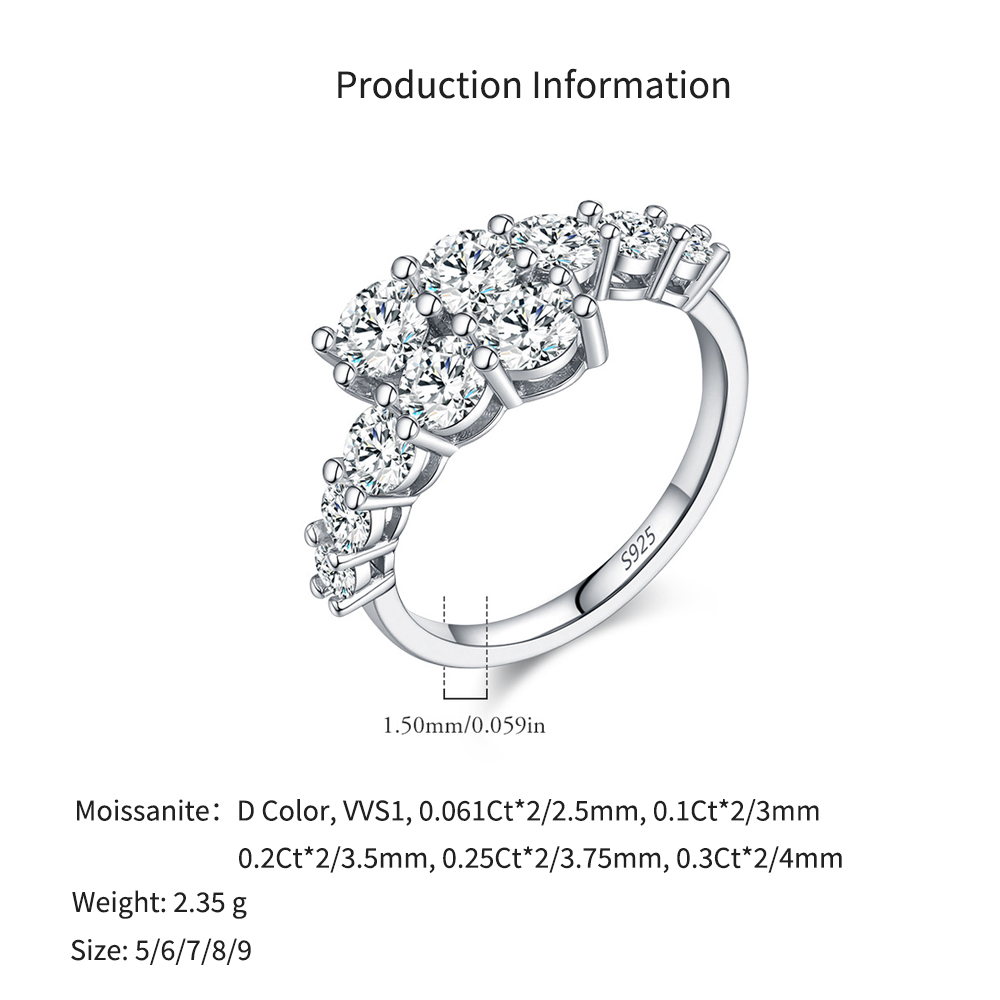 925 Sterling Silver Graduated Moissanite Row Ring 110200050