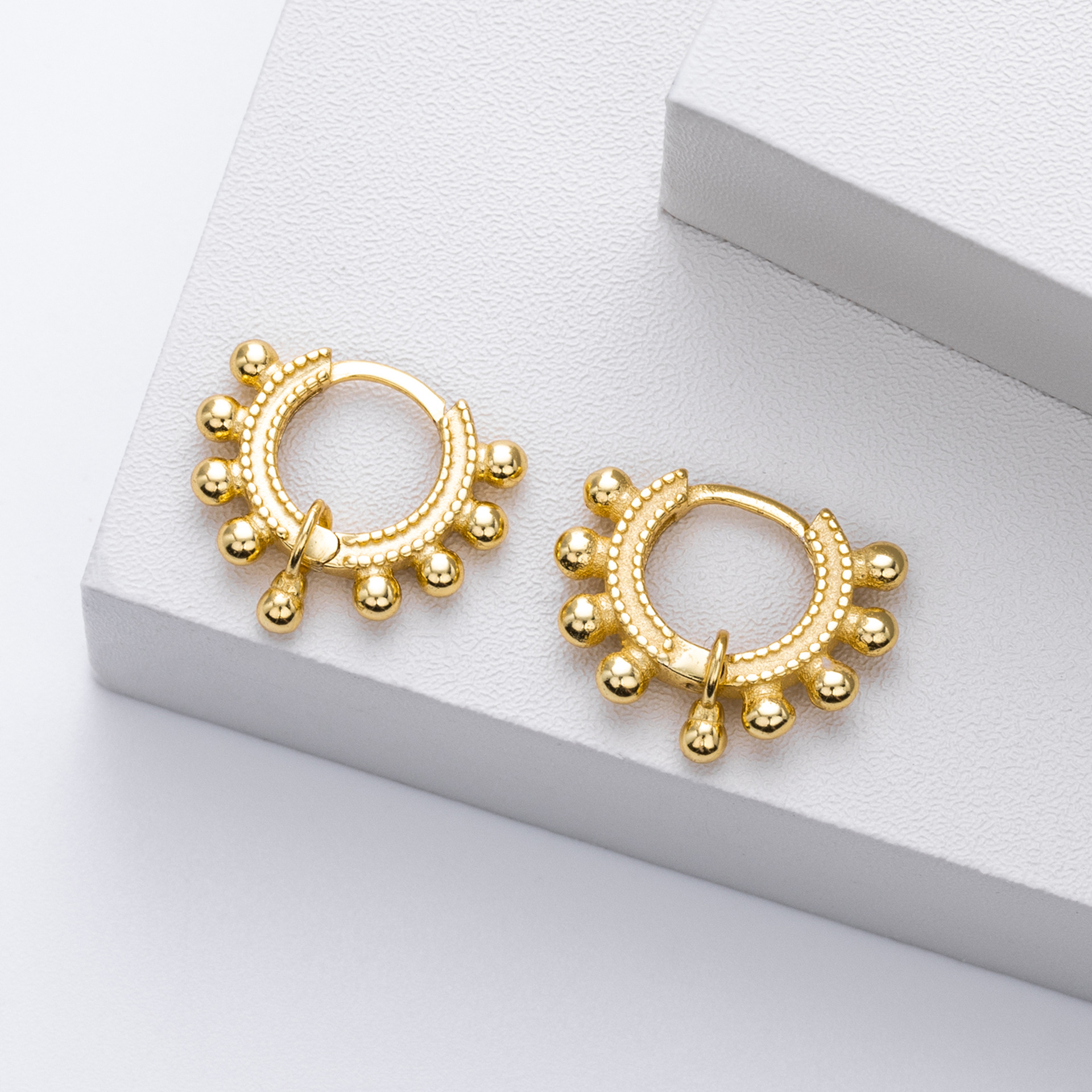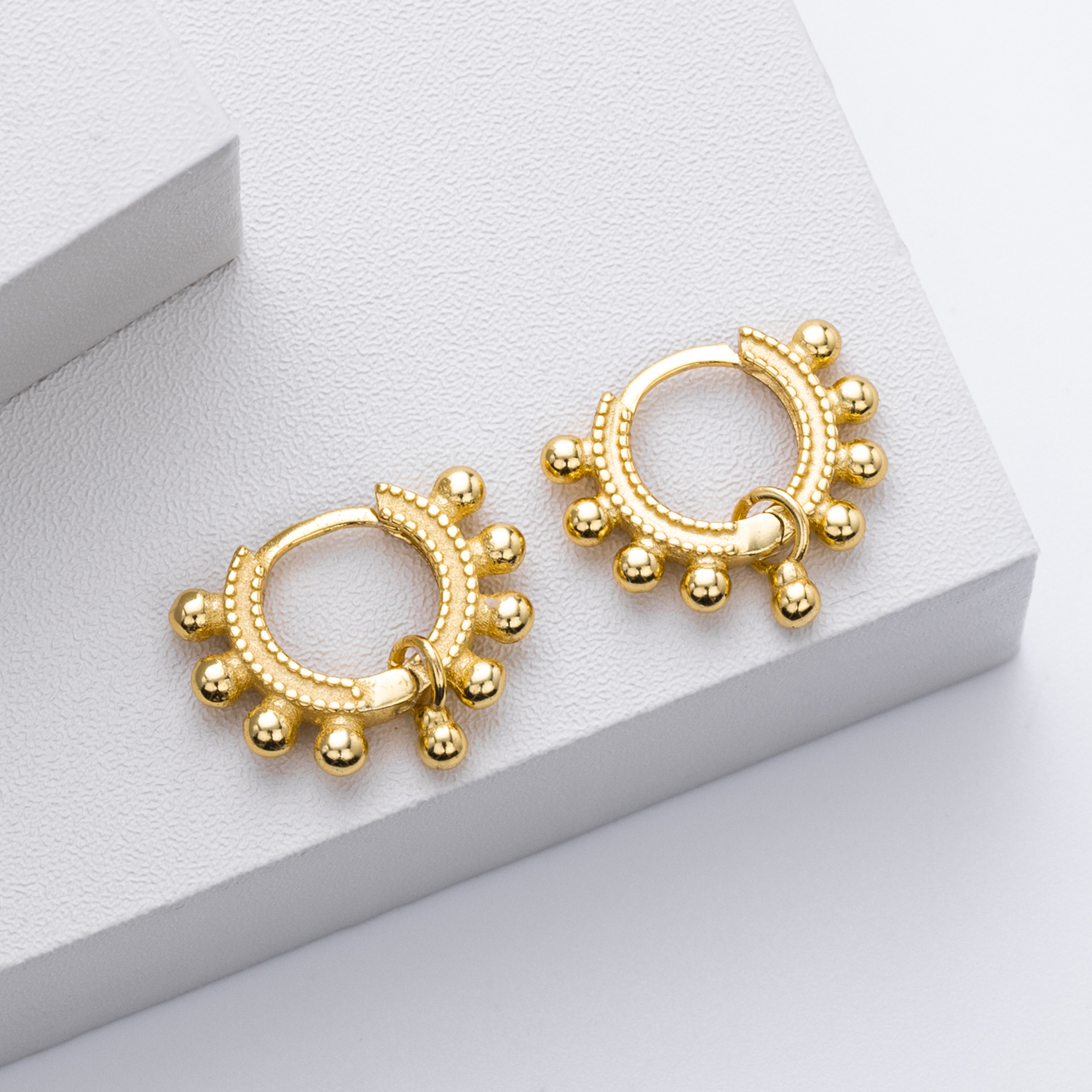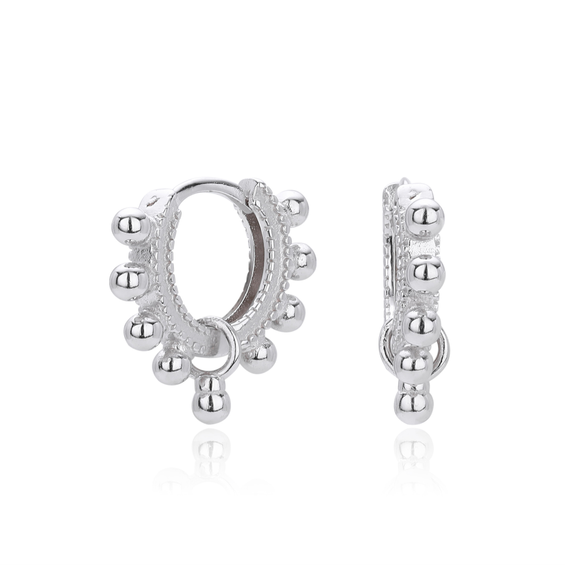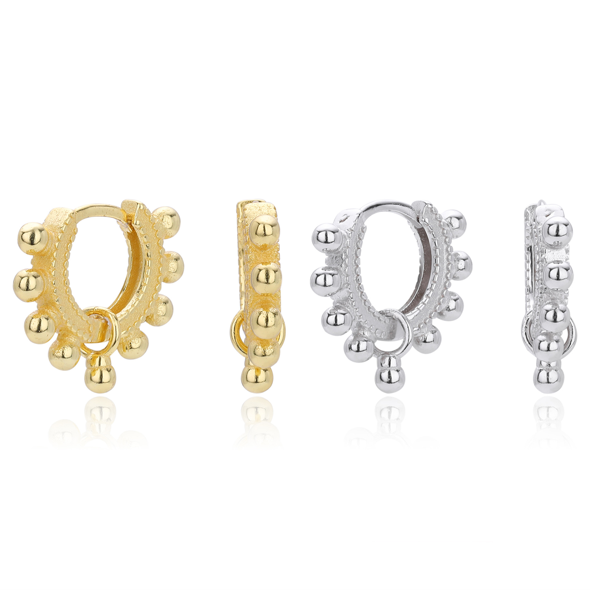 Expand your "Boho-Chic" and detailed jewelry offerings with our Wholesale 925 Sterling Silver Granulation Beaded Charm Hoops. The "Granulation" or beaded texture is a high-value detail that adds depth and character to the standard huggie silhouette. The addition of a "Micro-Charm" (the dangling bead) taps into the current trend for kinetic jewelry that moves with the wearer. Manufactured from solid S925 sterling silver, these earrings are perfect for festival collections or vintage-inspired lines.