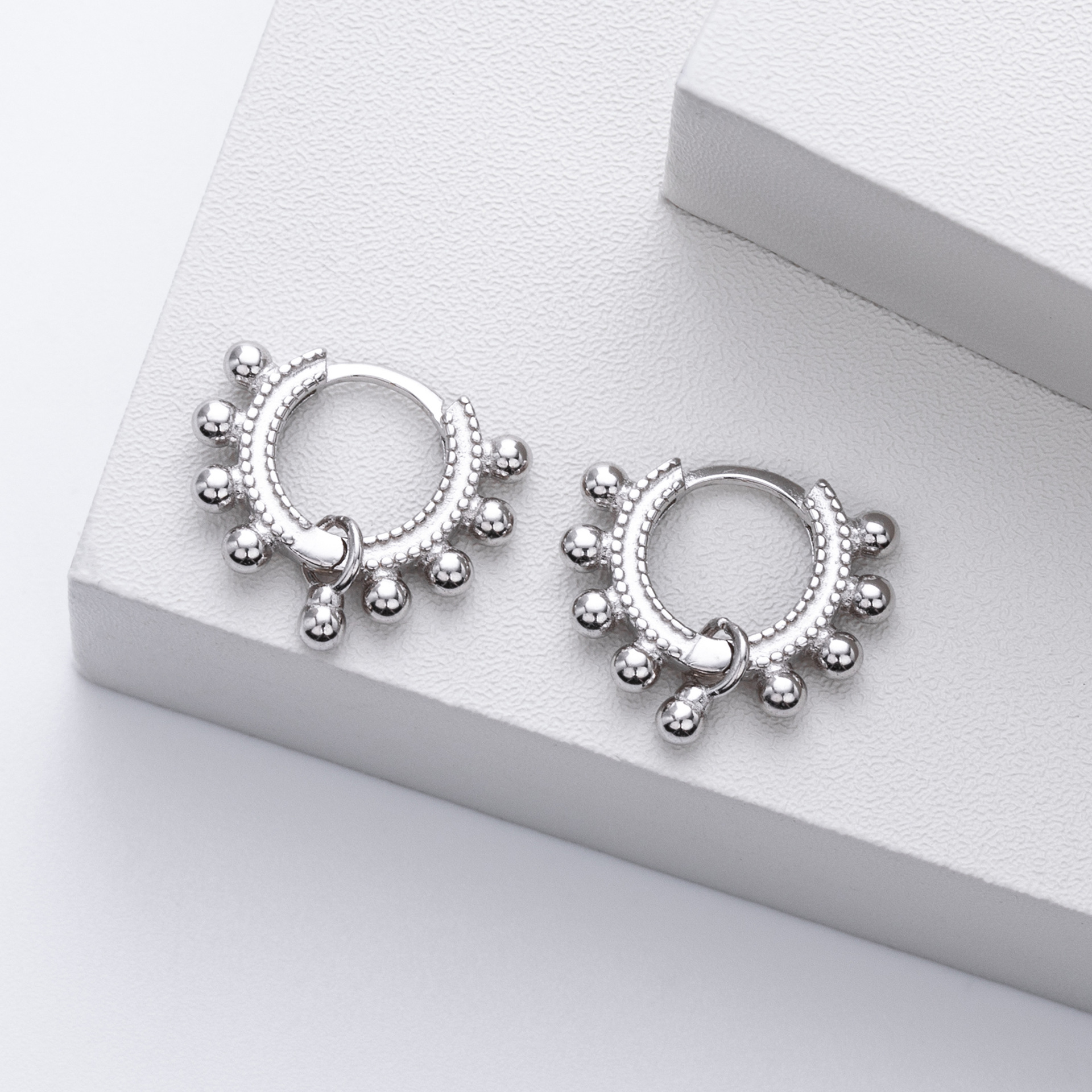 925 Sterling Silver Granulation Beaded Charm Hoop Earrings 60200317