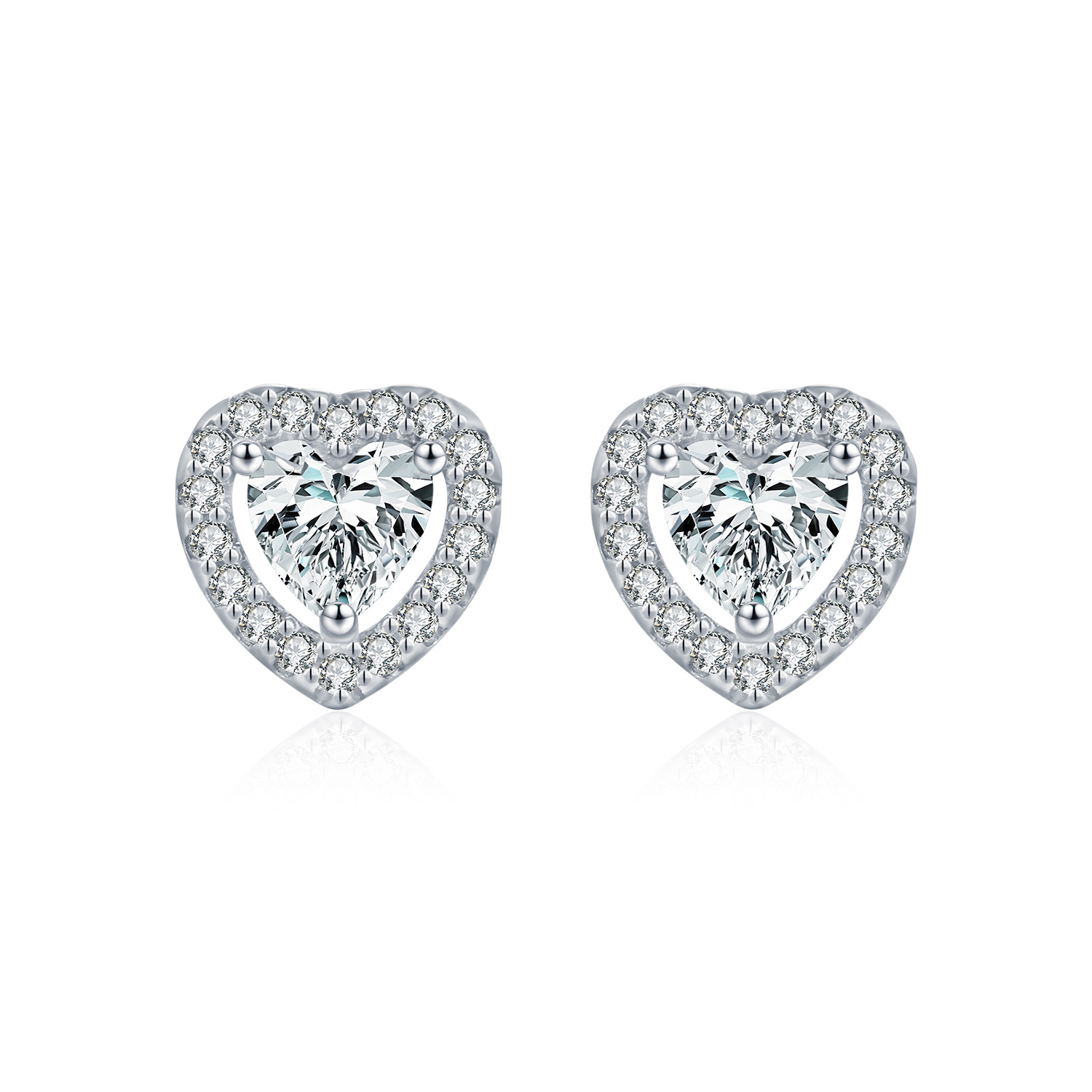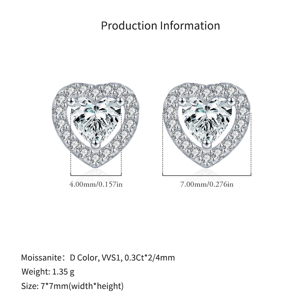 925 Sterling Silver Heart Cut Halo Moissanite Stud Earrings 110100061