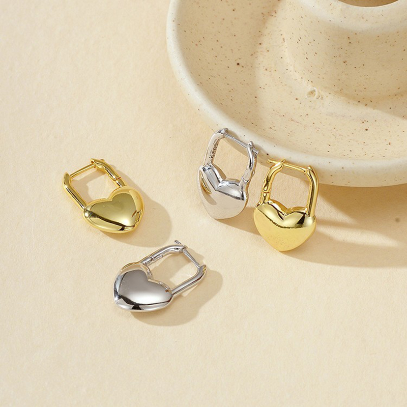 Source a perennial best-seller with our 925 Sterling Silver High-Polish Heart Padlock Huggie Hoop Earrings. This design capitalizes on the enduring popularity of the "Love Lock" motif, rendered here in a minimalist style that appeals to a wide demographic. The smooth, mirror-like high-polish finish ensures a premium look without the cost of gemstone setting. Crafted from authentic S925 sterling silver, this item guarantees durability and hypoallergenic quality, making it a high-turnover staple for boutiques and online stores targeting the modern jewelry market. Excellent retail margins and suitable for bulk stocking.