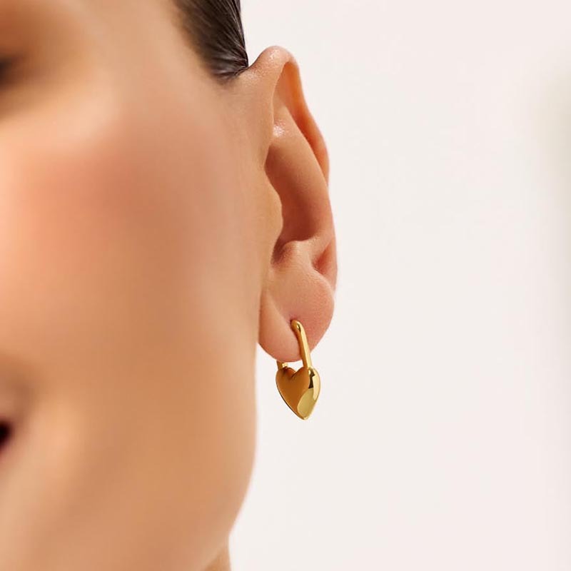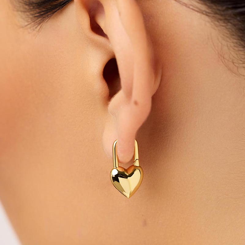 925 Sterling Silver High-Polish Heart Padlock Huggie Hoop Earring 60300218