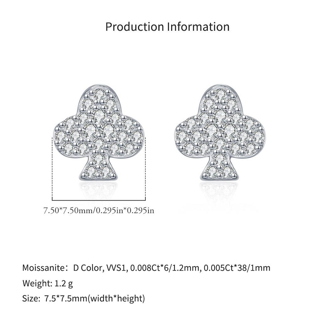 925 Sterling Silver Hip Hop Poker Flower Moissanite Stud Earrings 110100049
