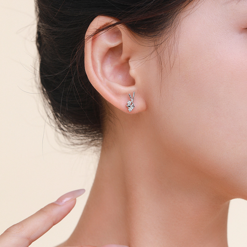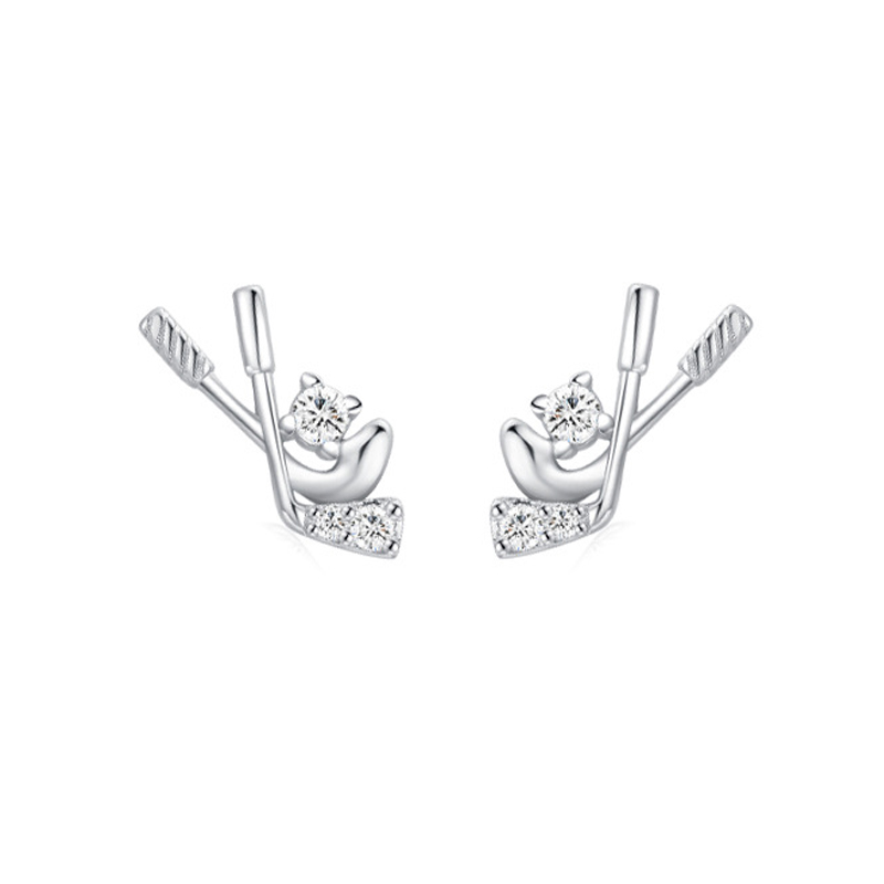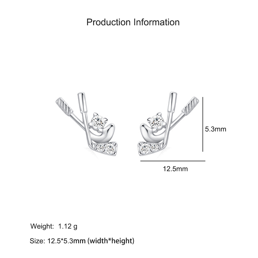 925 Sterling Silver Hockey Stick CZ Stud Earring 40200669