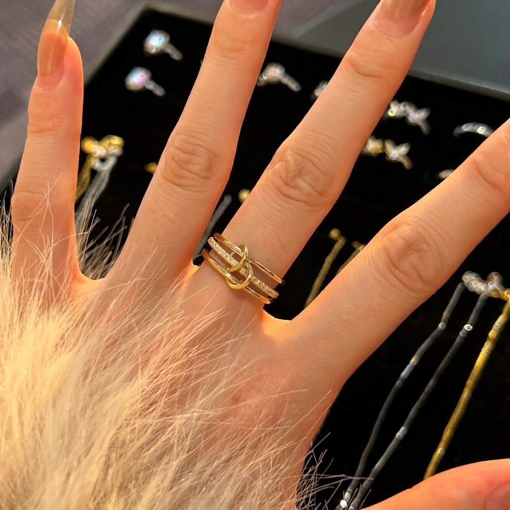 Capitalize on the massive "curated stack" and interlocking jewelry trends with our Wholesale 925 Silver Interlocking Triple-Band Pave Ring. Multi-band rolling rings are exceptional retail drivers, offering customers a bold, designer-level look in one easy-to-wear piece. This highly commercial SKU features three fluidly linked bands (two polished metal, one micro-pave crystal) held together by circular connectors. Available in highly requested silver and gold finishes, this hypoallergenic S925 ring delivers incredible volume, dynamic movement, and premium boutique perceived value. A mandatory, fast-turning anchor for your "Modern Statement" and "Everyday Luxury" assortments.