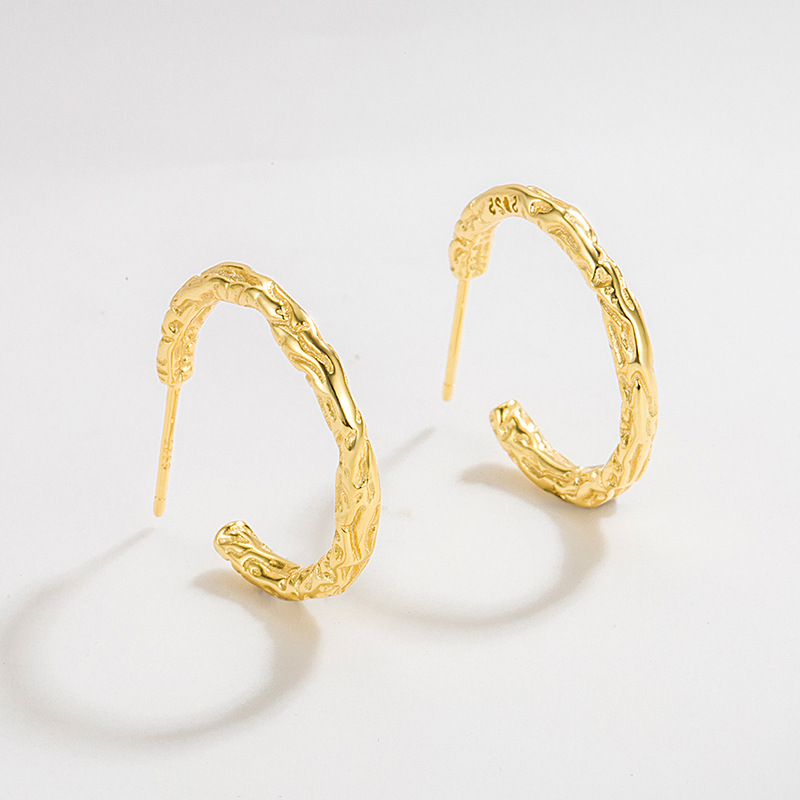 Update your jewelry selection with the trending aesthetic of our Wholesale 925 Sterling Silver Irregular Crinkled Texture C-Hoops. "Organic" and "Molten" textures are currently dominating the fashion jewelry market. This SKU features a bold "C-Shape" profile with a distinctive "Wrinkled/Crinkled" finish that differentiates it from standard smooth hoops. Manufactured from solid S925 sterling silver, these earrings offer the substantial look and feel of high-end designer jewelry at a wholesale price point that allows for excellent retail margins.