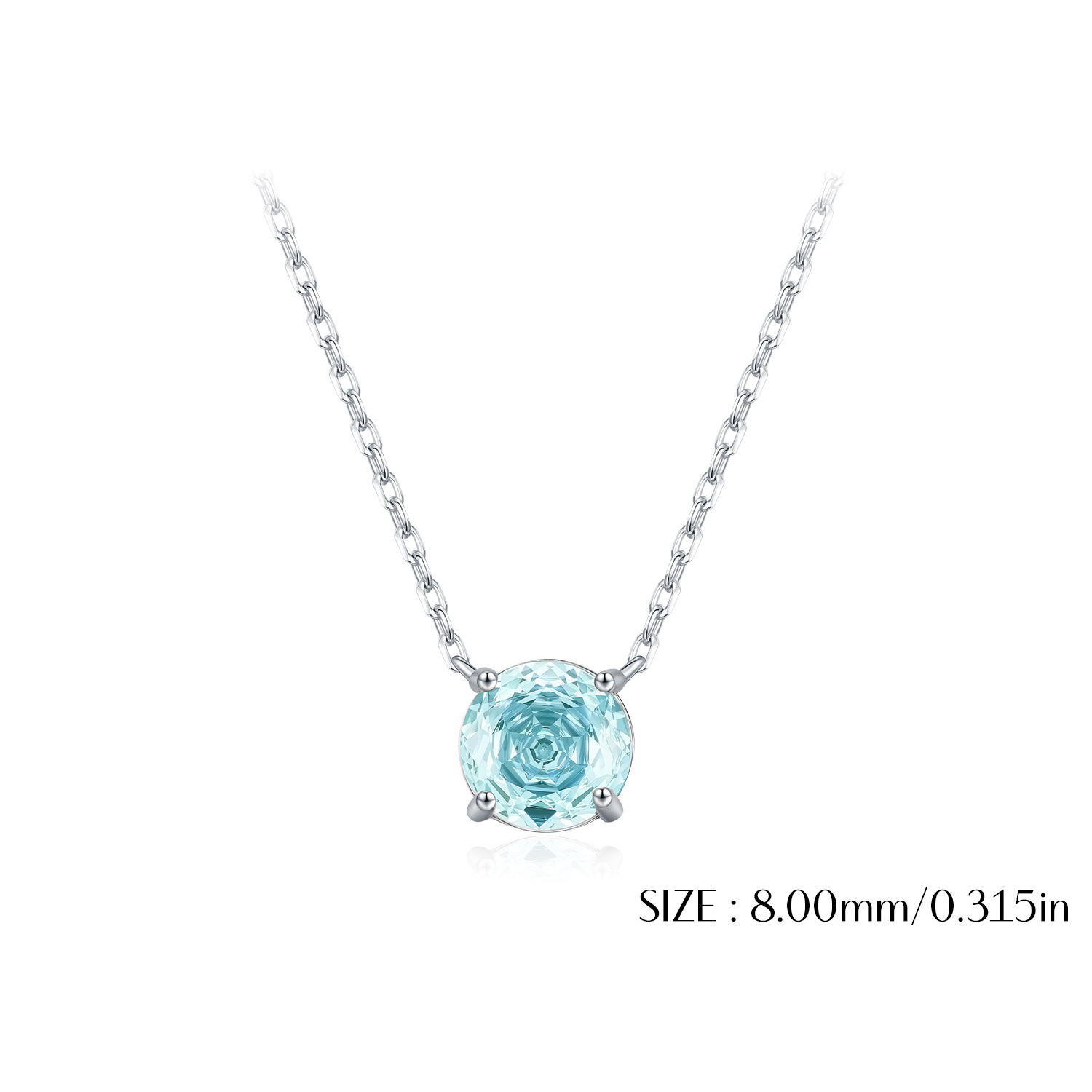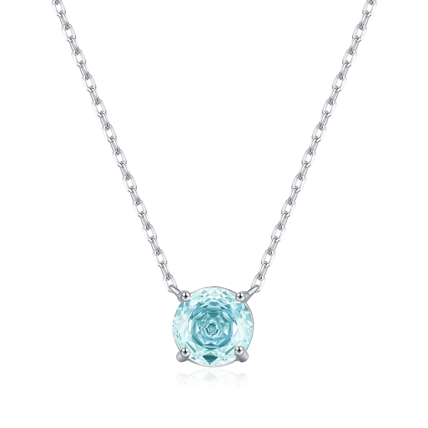 925 Sterling Silver Light Sea Blue Rose Cut Necklace 80200532
