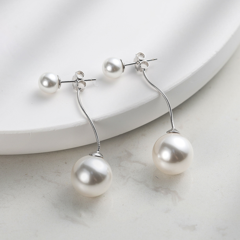 Elevate your contemporary jewelry assortments with our Wholesale 925 Sterling Silver Linear Double Shell Pearl Drop Earrings. The "modern pearl" category continues to dominate retail trends, and this SKU answers the demand perfectly with an architectural, linear silhouette that connects a delicate top stud to a prominent bottom drop. By utilizing premium white shell pearls, this piece guarantees a flawless, perfectly uniform luster and shape, providing a high-end designer look while keeping wholesale costs highly competitive for maximum retail margins. Featuring traditional stud backings and available in essential silver and yellow-gold platings, this elegant item is a required addition to your "Modern Bridal," "Office Chic," and "Contemporary Pearl" collections.
