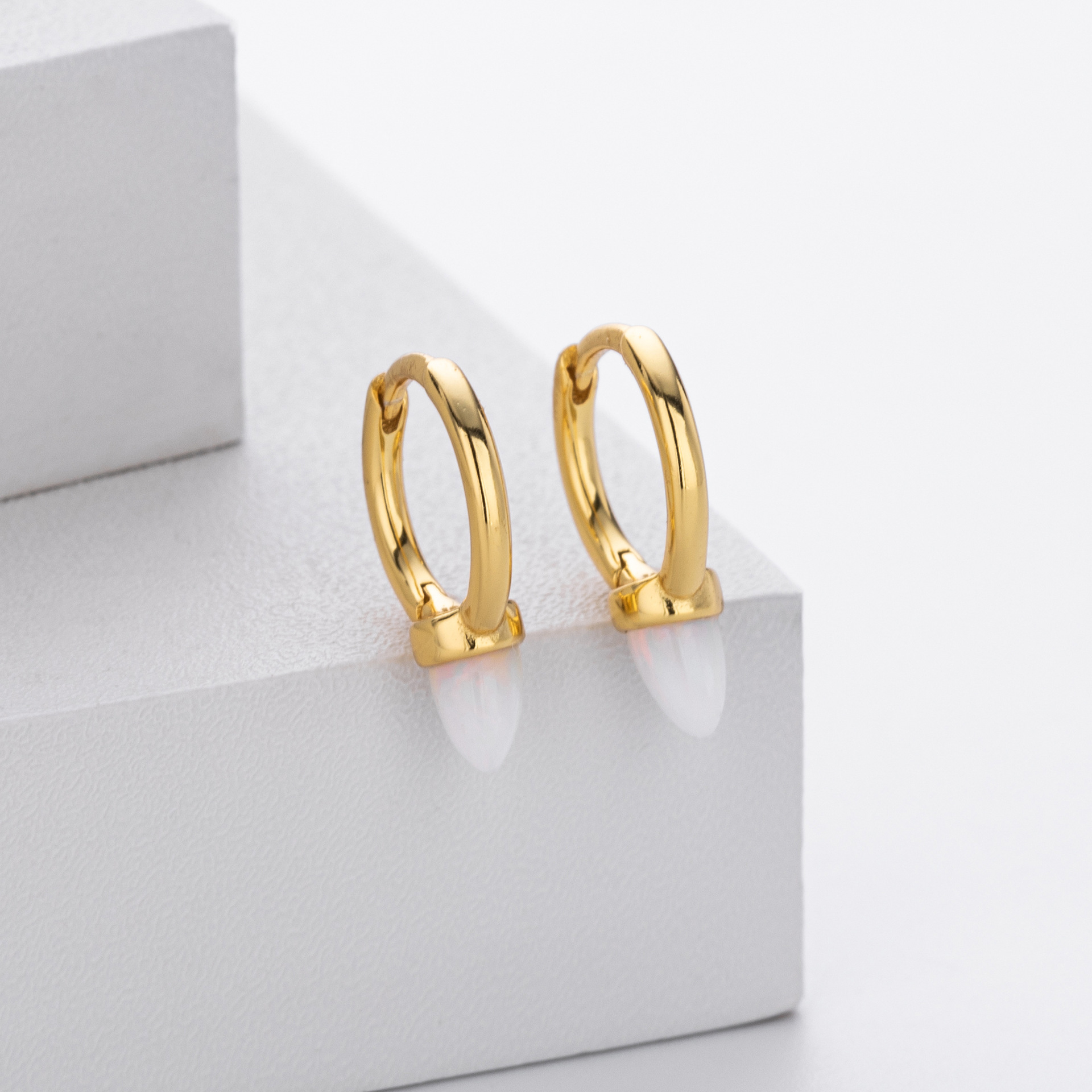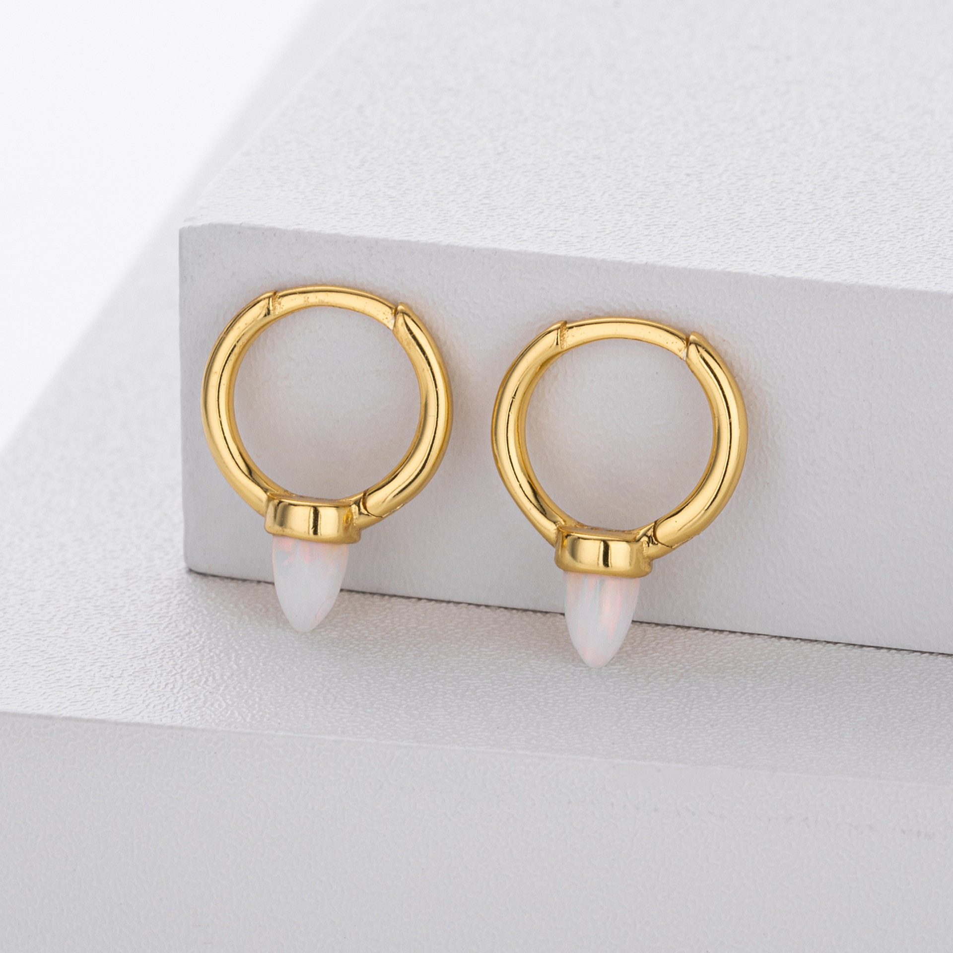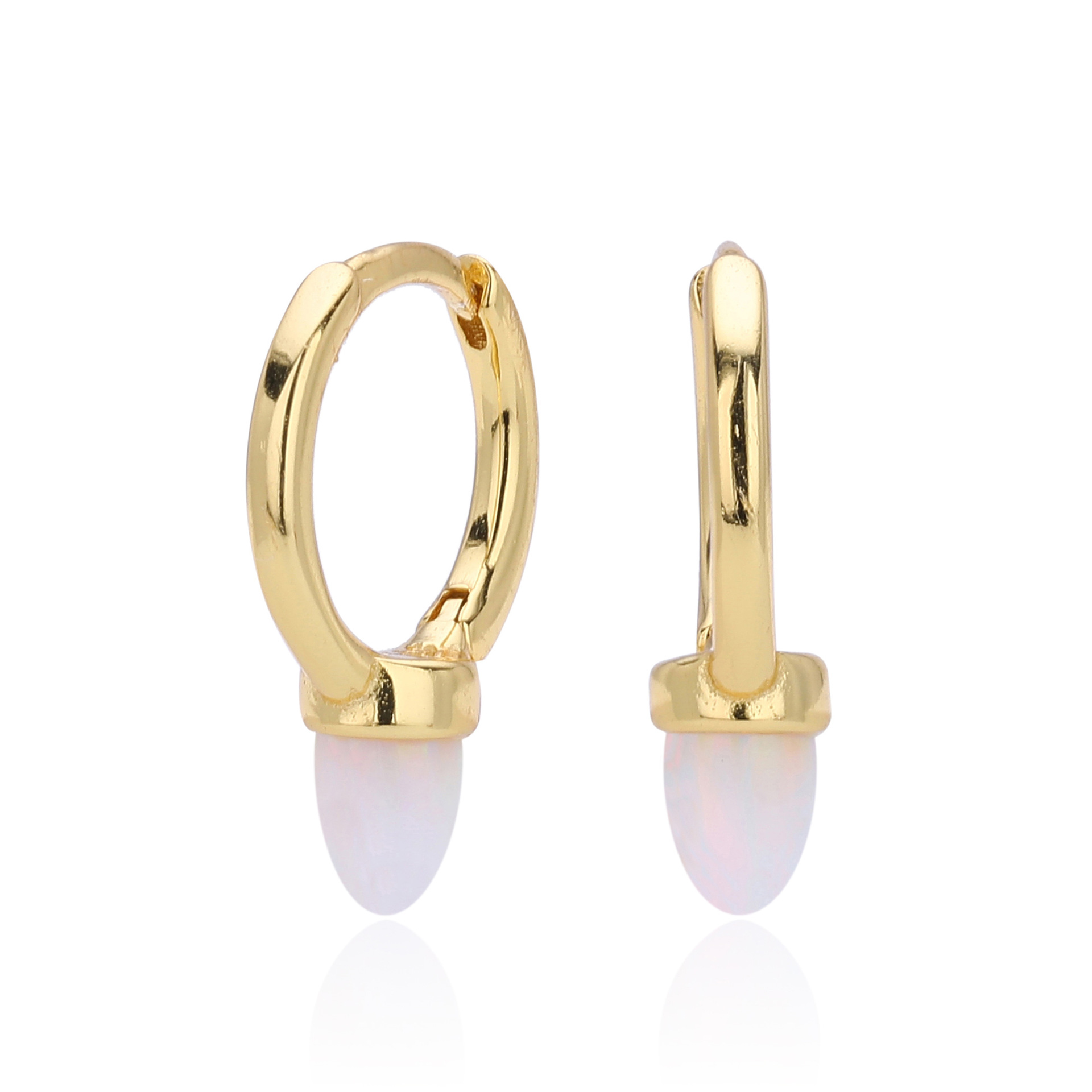 Introduce a touch of magic to your inventory with our Wholesale 925 Sterling Silver Luminous Bullet Stone Hoops. This SKU combines the edgy "Spike" or "Bullet" silhouette with the soft allure of a luminous stone, appealing to the "Sweet Cool" and minimalist trends. The petite size makes them ideal for second or third lobe piercings, catering to the "Ear Curated" market. Manufactured from solid S925 sterling silver, these earrings are a unique yet versatile addition to any modern jewelry collection.