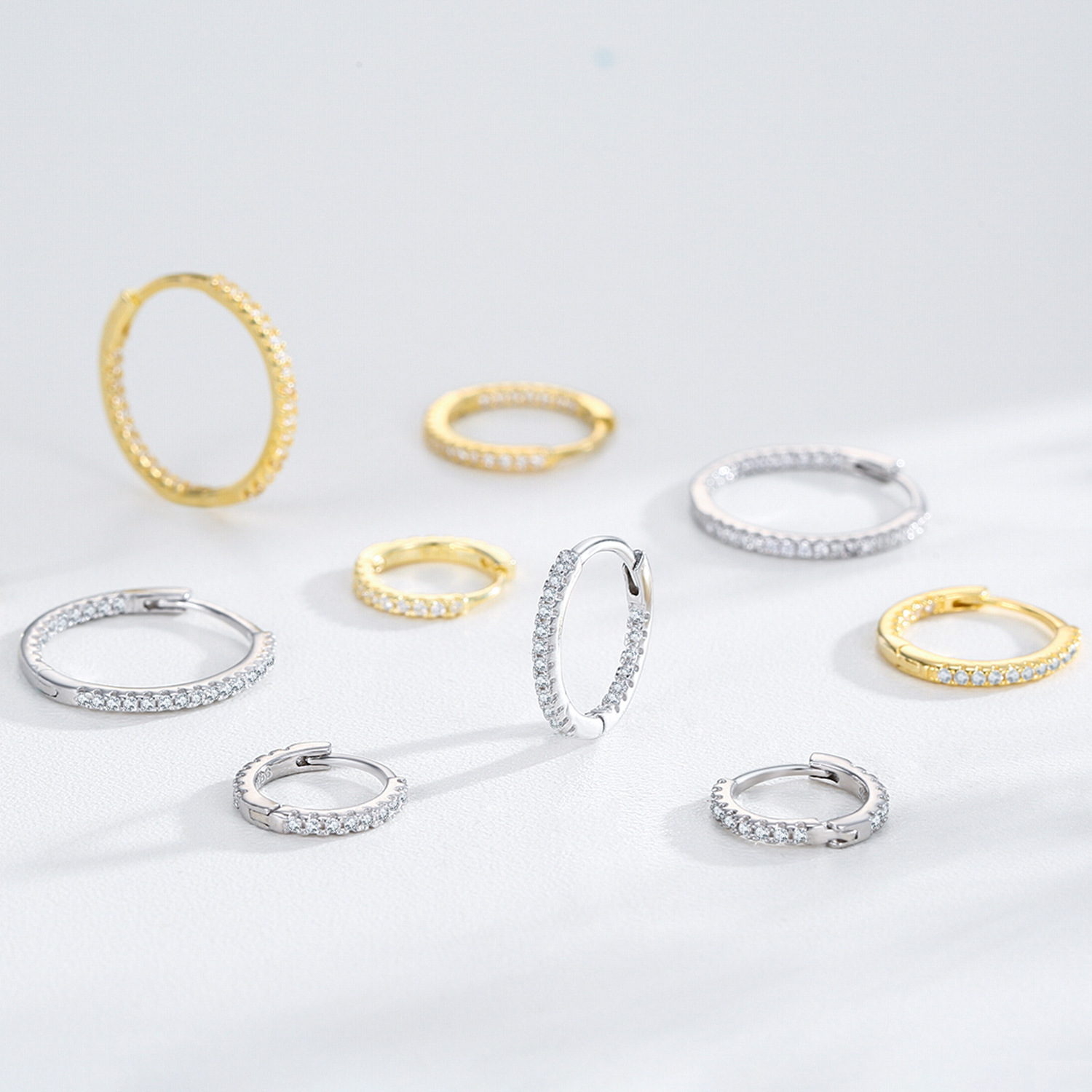 These classic 925 sterling silver CZ hoop earrings are a proven bestseller for jewelry retailers and e-commerce platforms. Featuring micro-pavé cubic zirconia for refined sparkle, each piece is available in silver or 18K gold plating. Lightweight, durable, and hypoallergenic — a must-have accessory that fits any jewelry collection. Ideal for boutiques, gift shops, and online sellers seeking timeless, fast-moving pieces with strong retail appeal. Bulk pricing and consistent craftsmanship available.