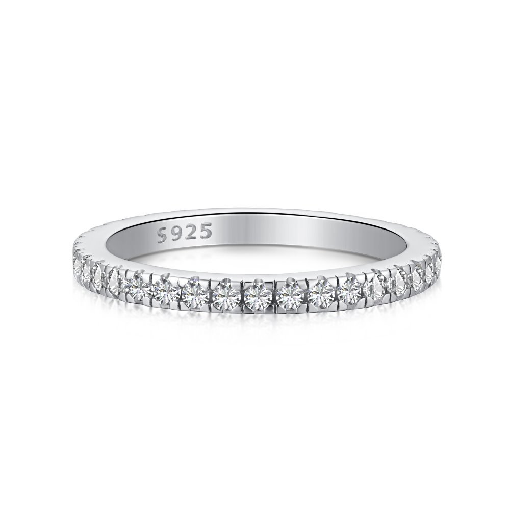 Capitalize on the essential bridal and everyday luxury markets with our wholesale-exclusive micro-pave stacking band. The ultra-thin, classic eternity silhouette is a perennial, high-volume retail driver that consistently encourages multi-unit purchases for custom ring stacks. This highly commercial SKU features a delicate row of brilliant round-cut clear zircons meticulously set along a sleek, slim band. Crafted from hypoallergenic S925 sterling silver, it delivers incredible boutique-level craftsmanship and a highly sought-after minimalist aesthetic. A fast-turning, mandatory, high-margin anchor for your wedding band alternatives, anniversary gifting, and contemporary stacking jewelry assortments designed to drive consistent, year-round sales.