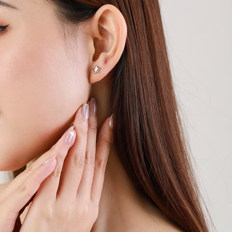 Add timeless sparkle to your jewelry selection with these 925 sterling silver mini star CZ stud earrings. Designed with a sleek five-pointed star and a sparkling center stone, they bring elegance and versatility to any collection. Made with premium sterling silver and rhodium plating for superior shine and durability, this best-selling minimalist style is ideal for retailers and boutiques targeting customers who love delicate celestial jewelry.