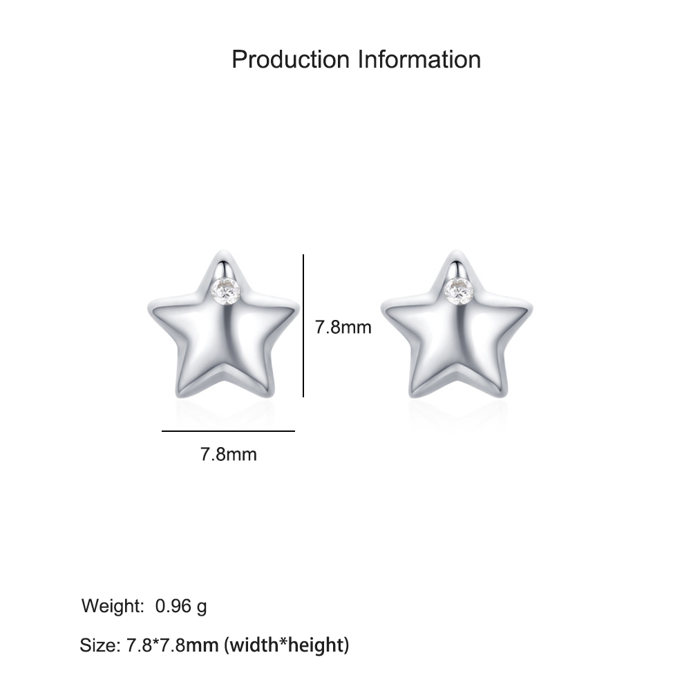 Shine bright with these charming 925 sterling silver mini star CZ stud earrings. Each earring features a petite five-pointed star accented with a brilliant cubic zirconia at its center, symbolizing light and hope. Crafted from genuine sterling silver and finished with a high-polish rhodium coating, these earrings offer long-lasting shine and hypoallergenic comfort. Their minimal design makes them perfect for layering or wearing alone for a subtle touch of sparkle.
