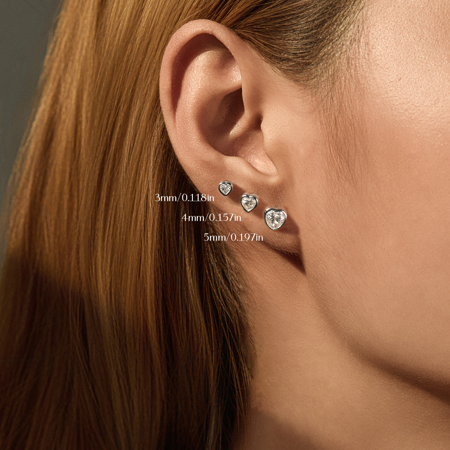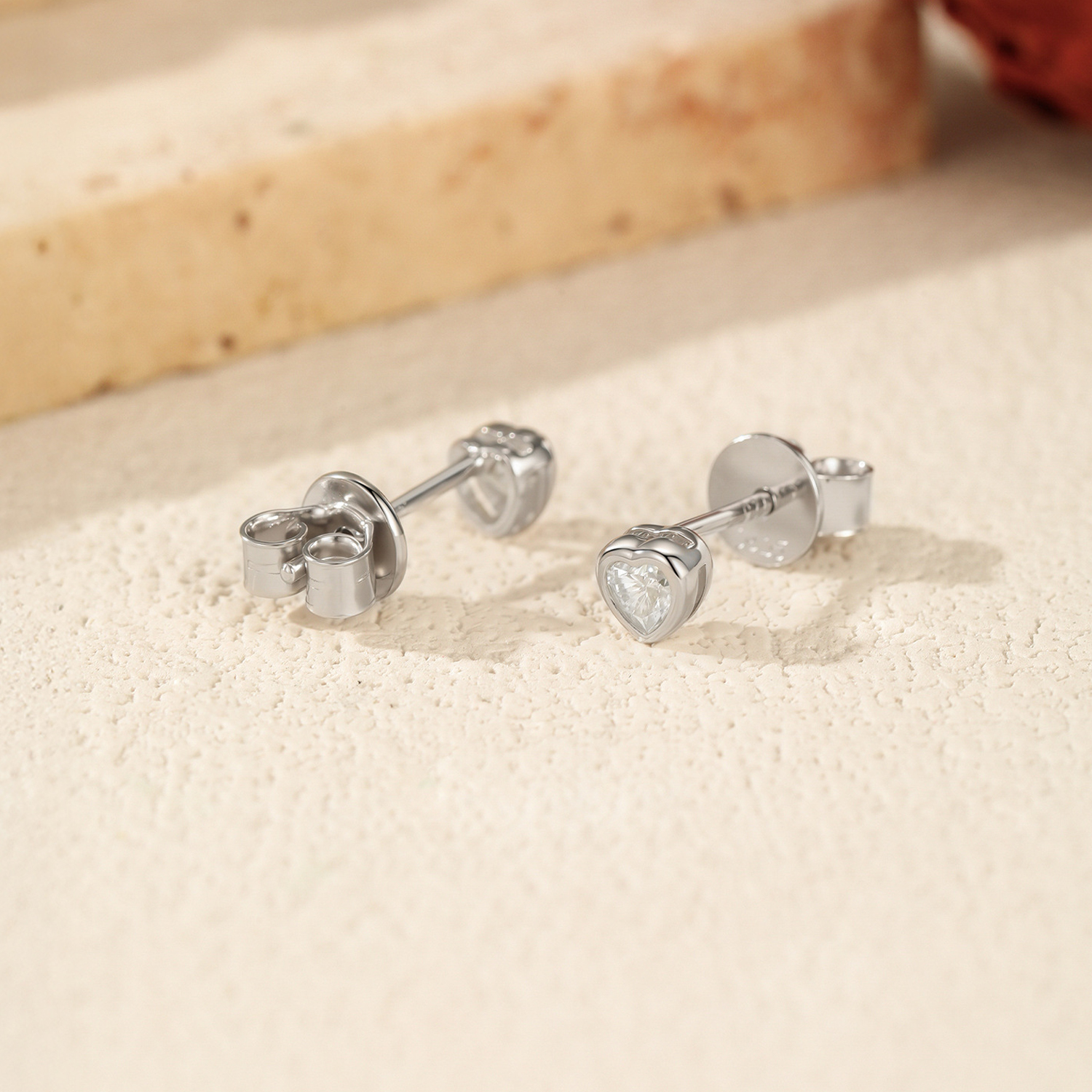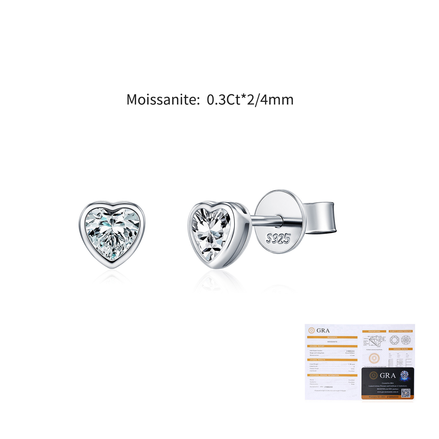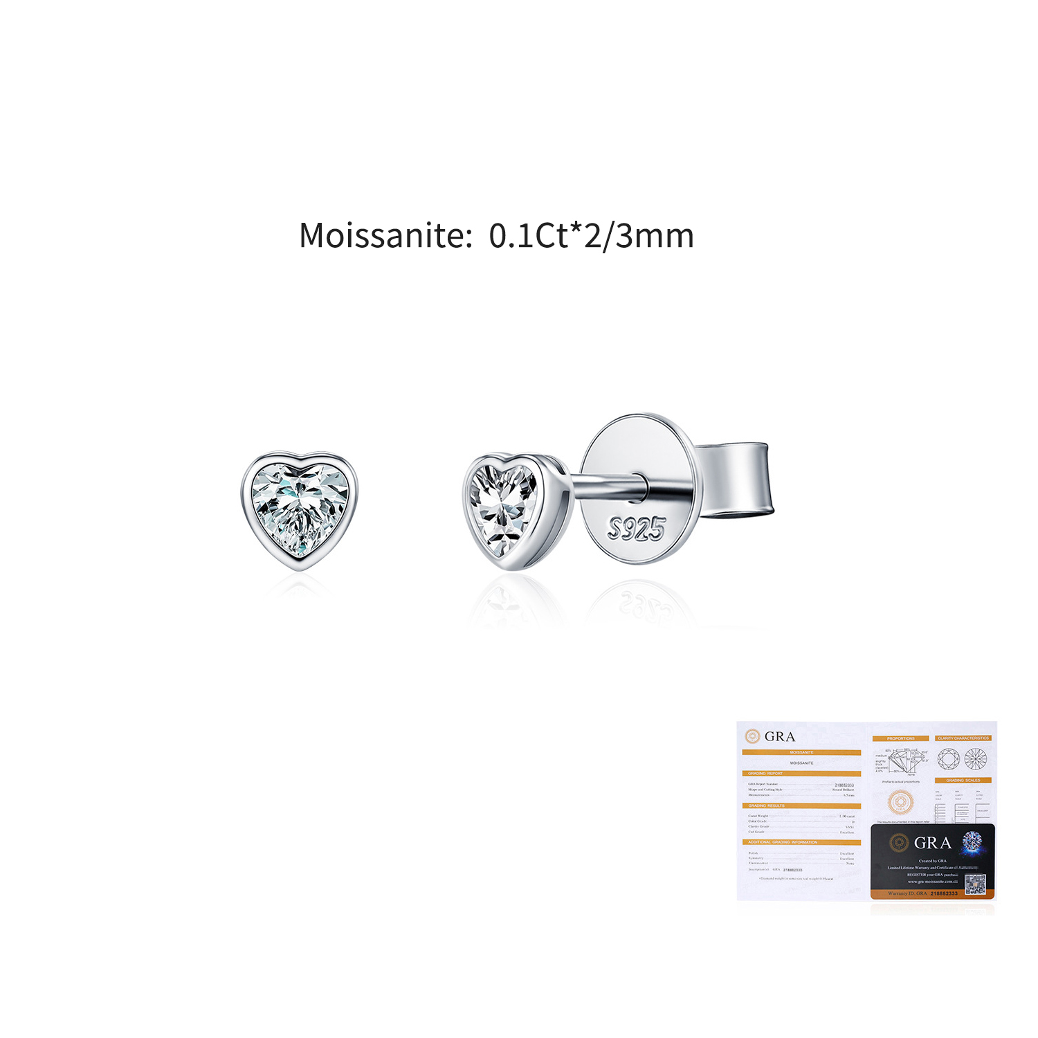 925 Sterling Silver Minimalist Bezel Heart Moissanite Studs 110100062
