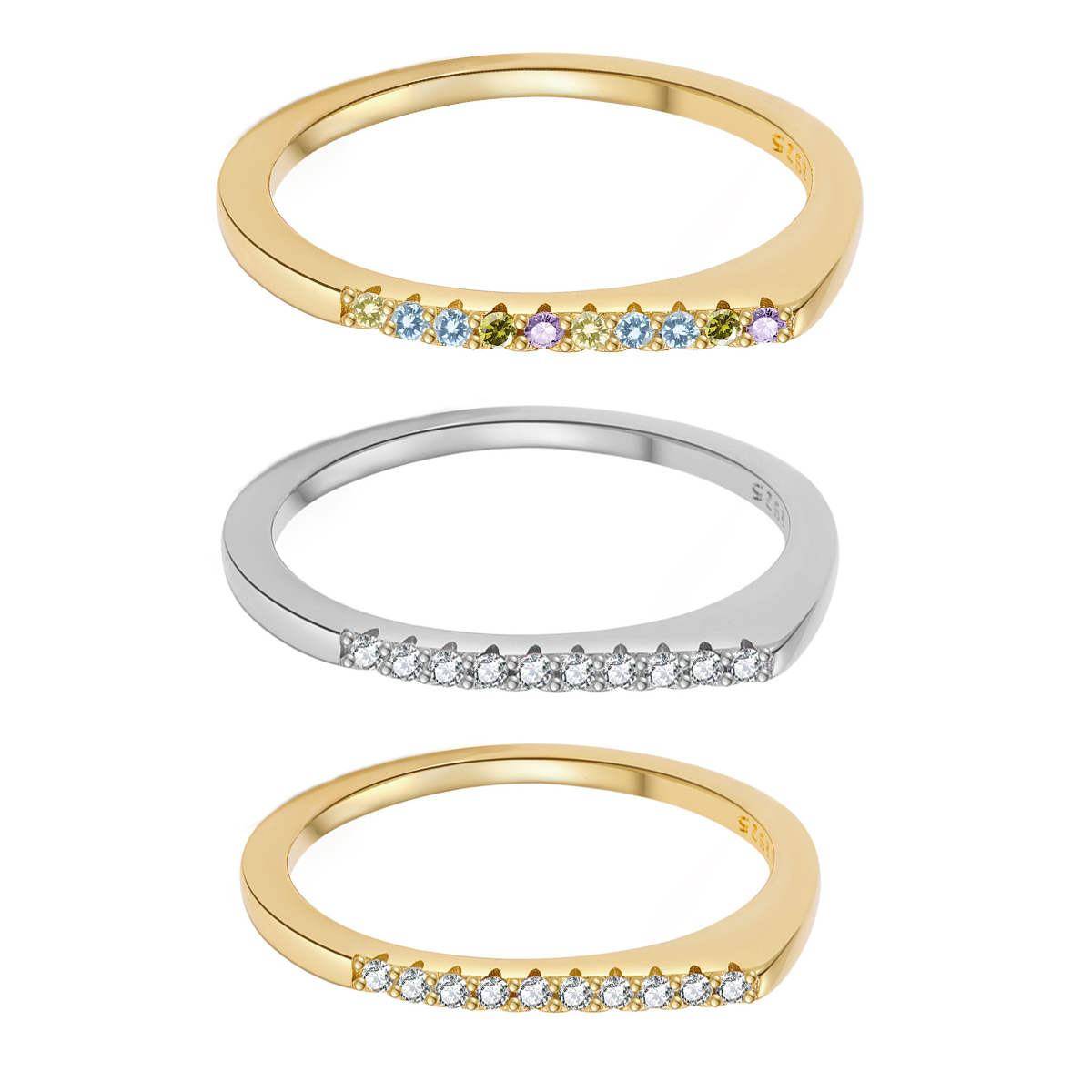 Drive high-volume, repeat purchases in your "everyday essentials" category with our Wholesale 925 Sterling Silver Minimalist Flat-Top Pave Ring. Minimalist stacking rings are foundational retail staples, and this SKU brilliantly updates the standard silhouette with a contemporary, architectural flat-top design that securely showcases a row of delicate pave stones. The true merchandising power of this item lies in its highly marketable variations: offering it in a classic silver finish, alongside gold-tone options with either clear or trendy pastel multi-colored stones. This variety inherently encourages customers to purchase multiple units at once to build their own custom stacks. Crafted from hypoallergenic S925 silver, this high-turnover piece is a mandatory anchor for your "Modern Minimalist," "Stacking Essentials," and "Everyday Fine Jewelry" assortments.