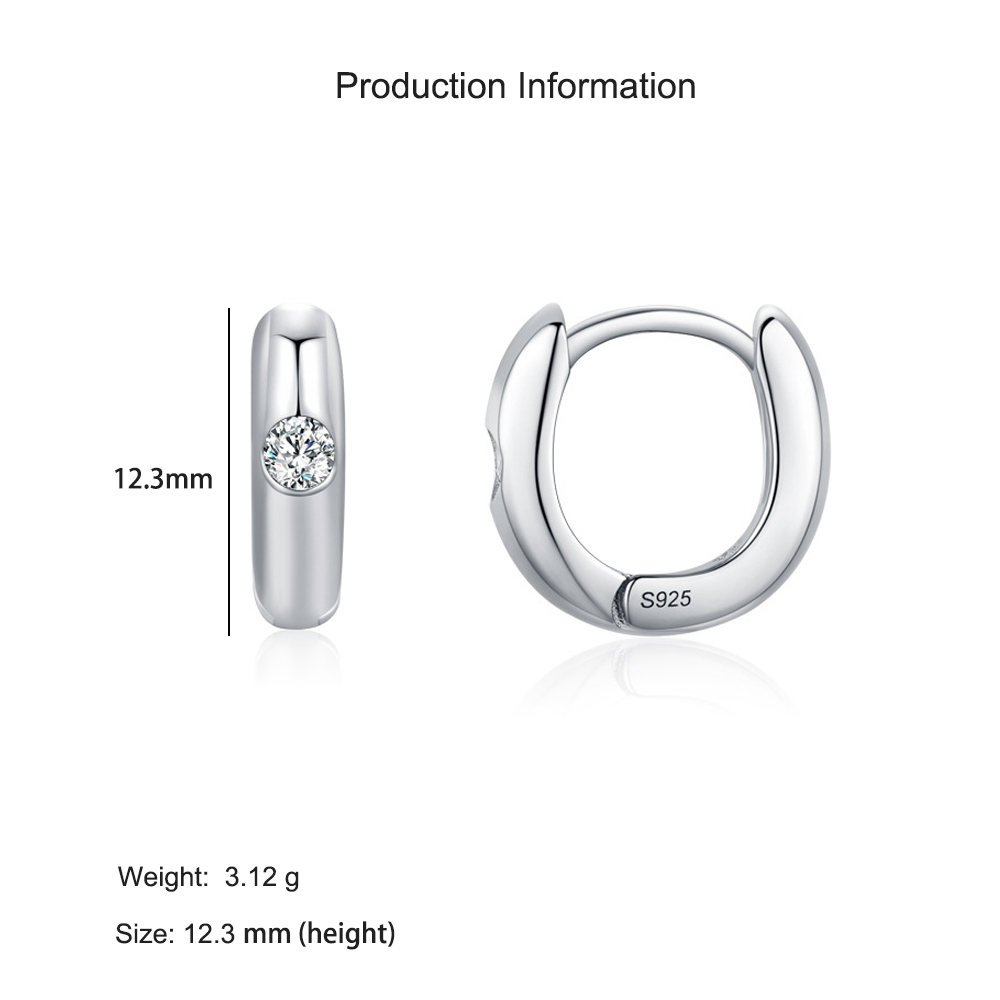 These 925 sterling silver hoop earrings feature a sleek geometric design with a single micro-paved zircon at the center, blending minimalism with refined sparkle. The polished silver finish enhances their modern silhouette, making them perfect for daily wear or chic evening looks. Crafted from high-quality sterling silver, they are hypoallergenic, durable, and comfortable for long wear. A timeless piece that complements any outfit with understated luxury.