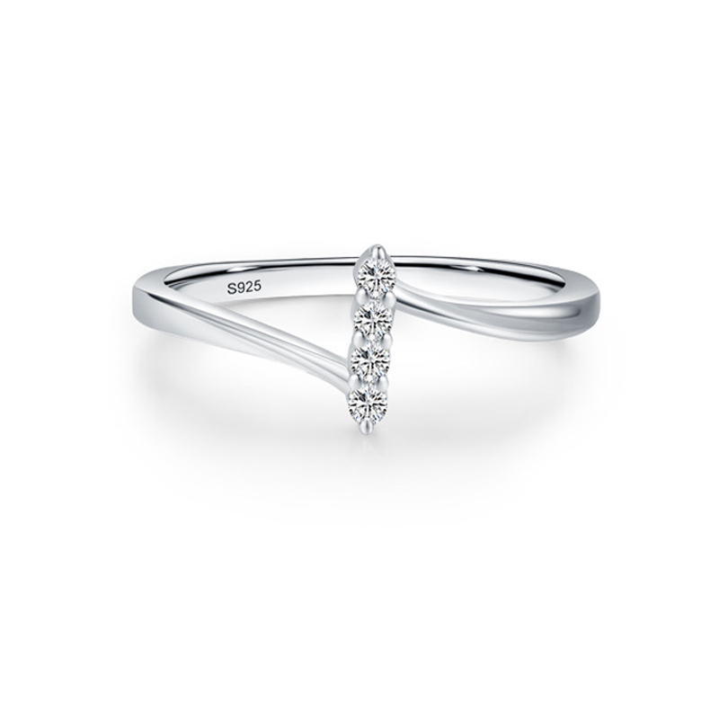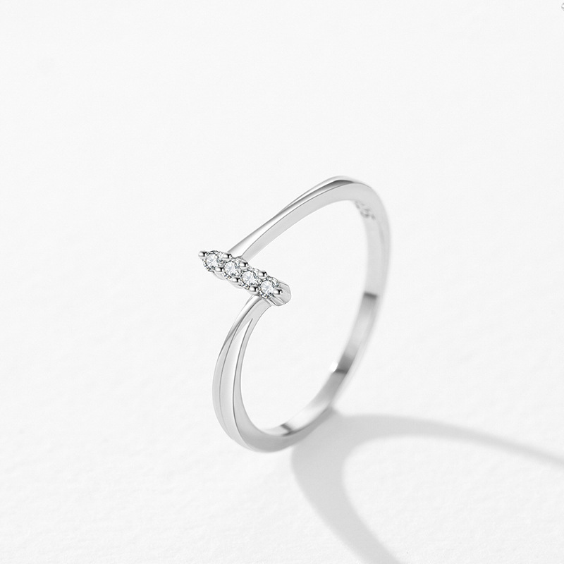 925 Sterling Silver Minimalist Geometric Zircon Ring 70100563