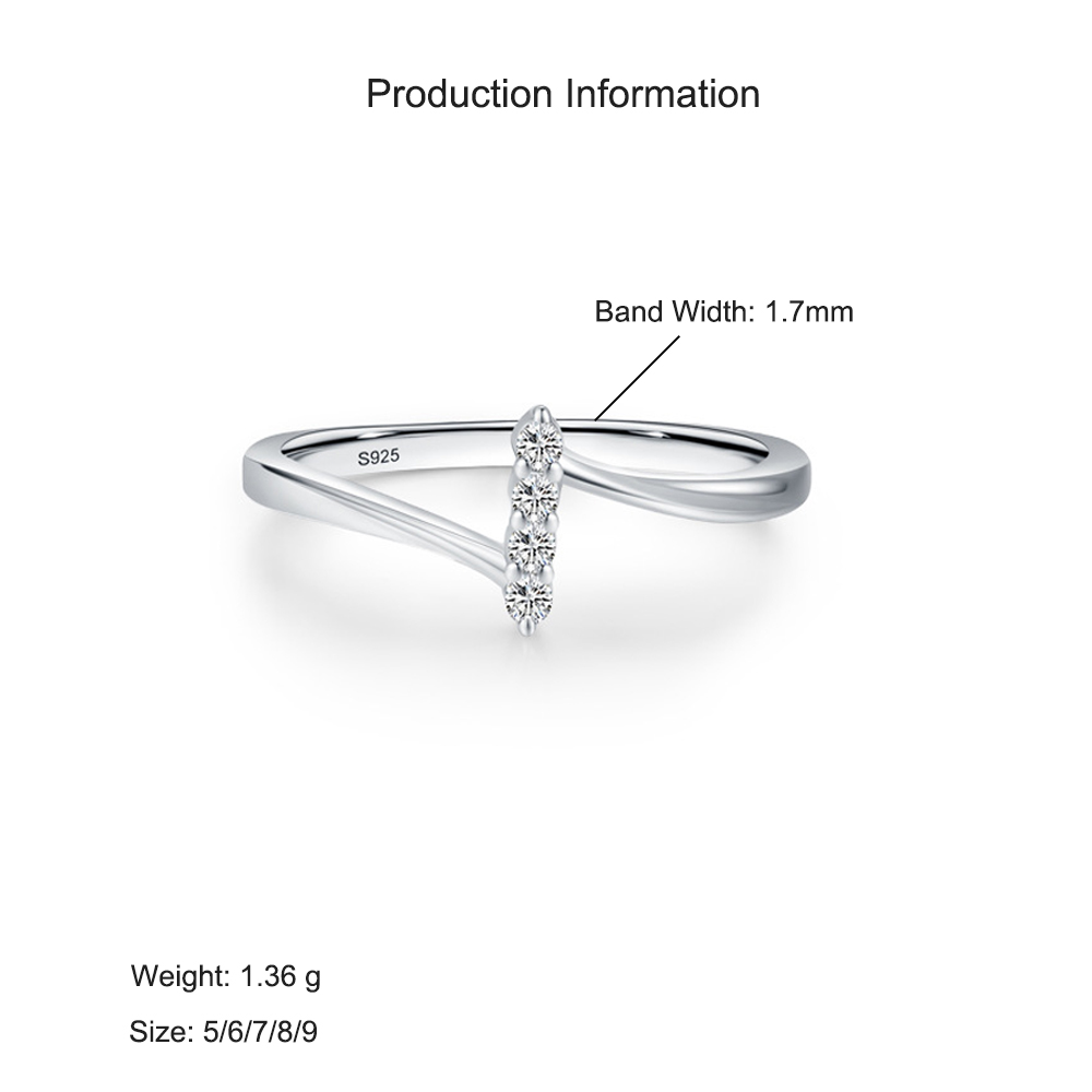 This elegant 925 sterling silver ring features a refined geometric crossover design accented with a vertical row of sparkling zircons. The minimalist silhouette embodies modern sophistication while maintaining timeless appeal. Crafted from genuine S925 silver, this ring offers a smooth, polished finish and a comfortable fit—perfect for daily wear or layering with other rings. A stylish piece for those who love simplicity with a touch of sparkle.