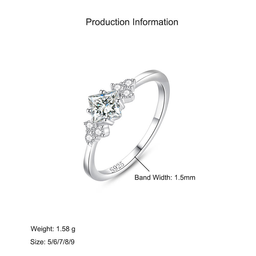 Refined and radiant, this 925 sterling silver ring features a dazzling princess-cut cubic zirconia at its center, accented by smaller round CZ stones for a delicate, balanced sparkle. The sleek, polished band embodies modern minimalism with a touch of luxury, making it perfect for daily wear, romantic dates, or special occasions. Crafted from genuine sterling silver and plated with rhodium for enduring brilliance, this ring captures effortless elegance inspired by Korean-Japanese fine jewelry aesthetics.