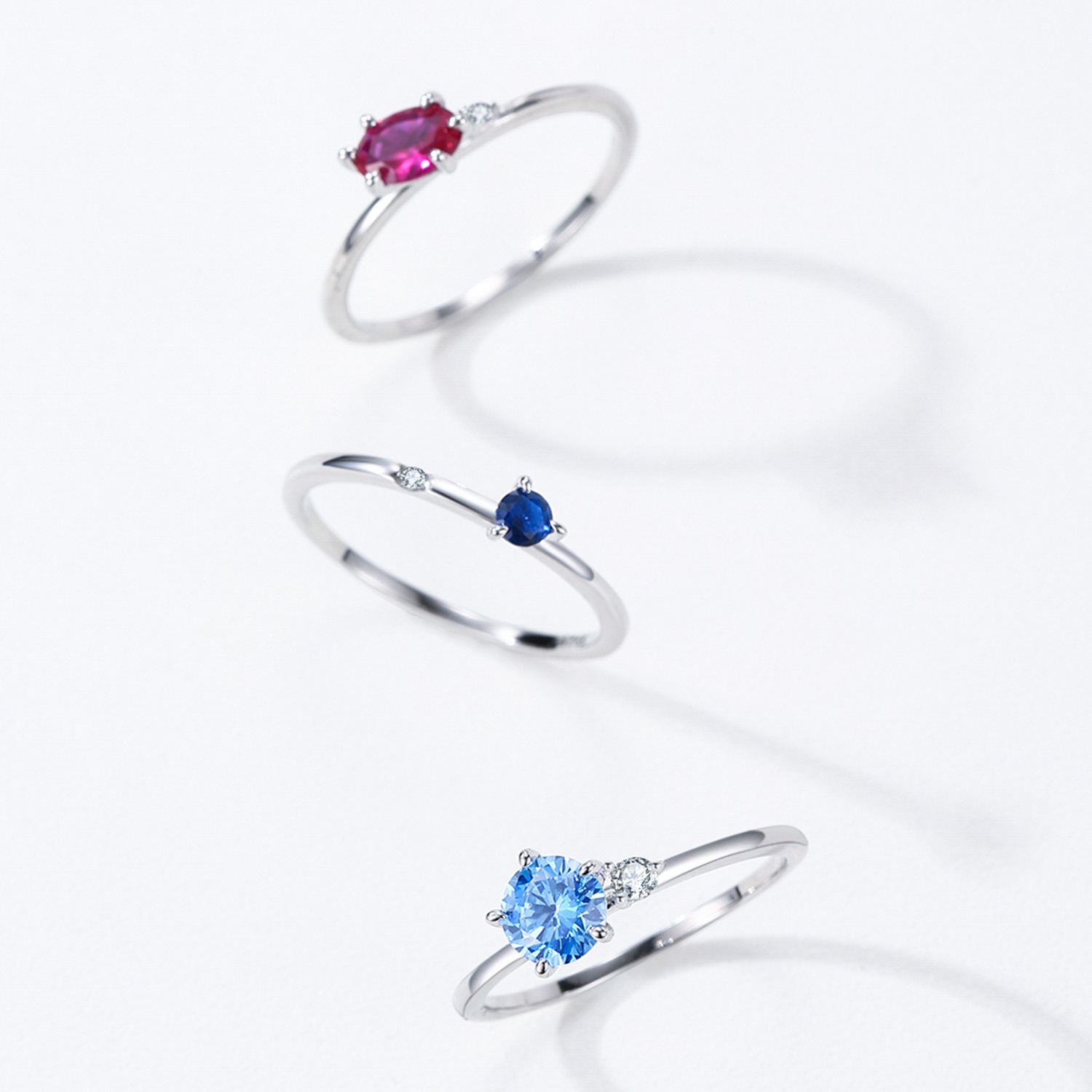 925 Sterling Silver Minimalist Sapphire Zircon Ring 70200360
