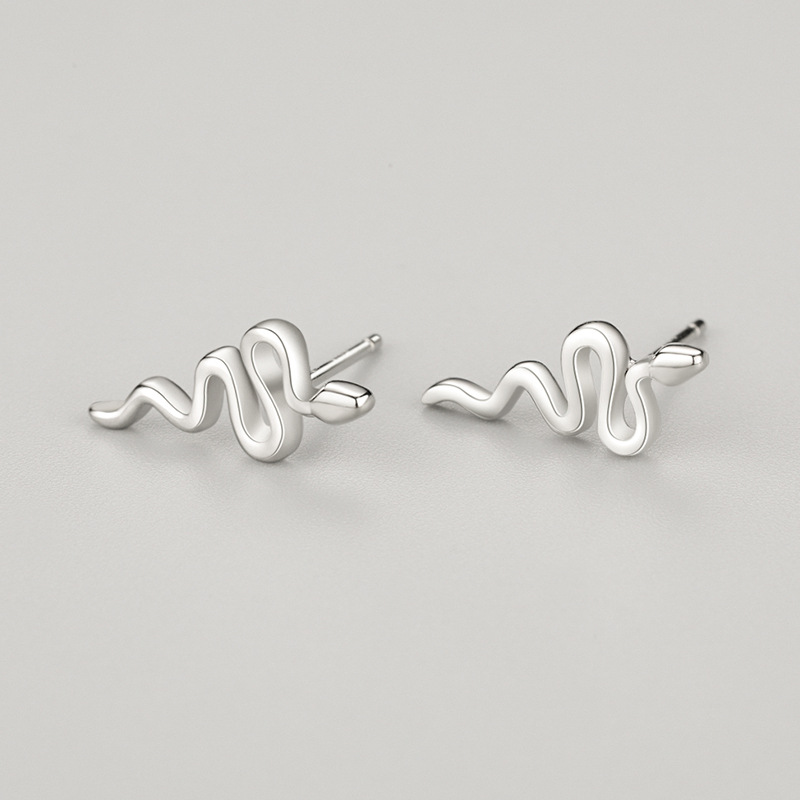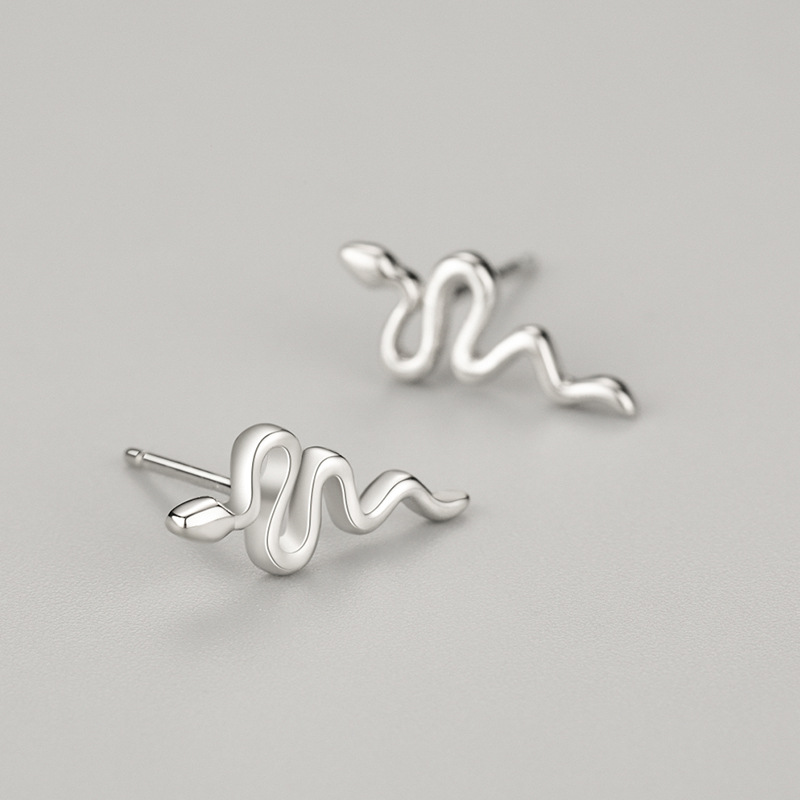 These 925 sterling silver snake-shaped stud earrings bring a bold yet minimalist edge to your everyday style. The fluid, curving silhouette captures the mysterious beauty of a serpent, symbolizing transformation and confidence. Perfect for fashion-forward individuals who love statement details, these earrings are crafted from hypoallergenic sterling silver for comfort and shine. Wear them solo for a sleek look or pair them with other silver pieces for a chic layered effect.