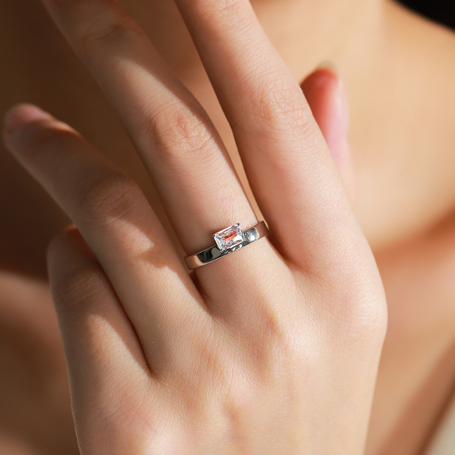 925 Sterling Silver Minimalist Solitaire Square Cut Zircon Ring 70200365