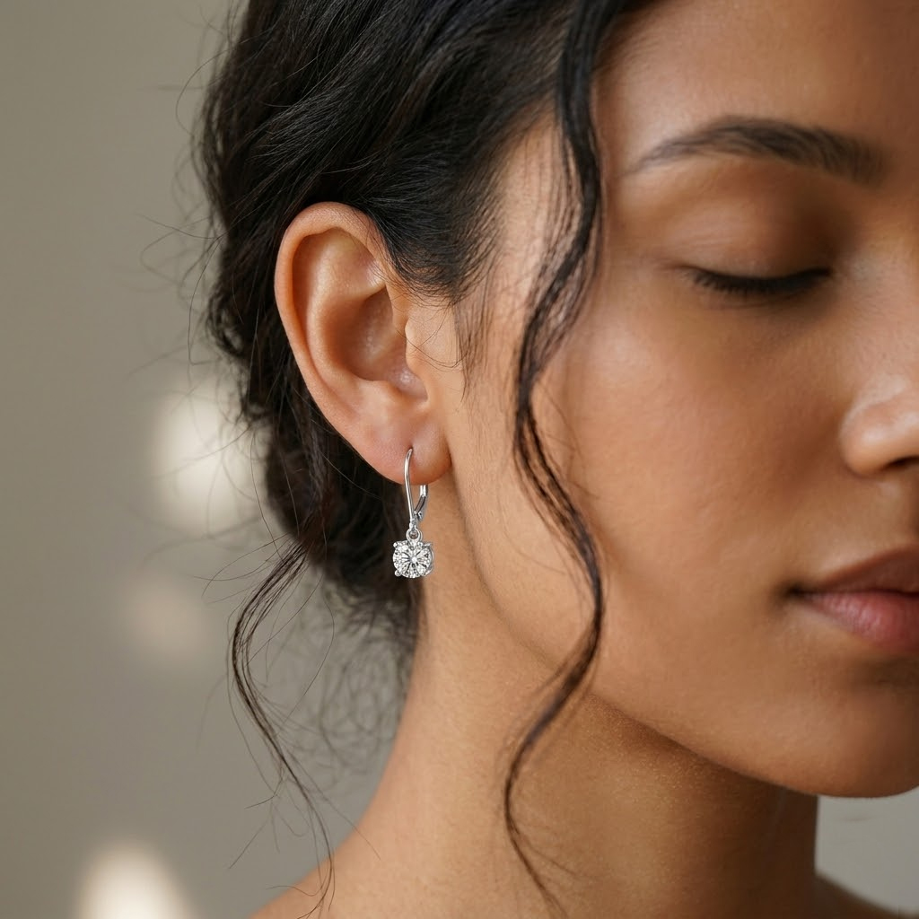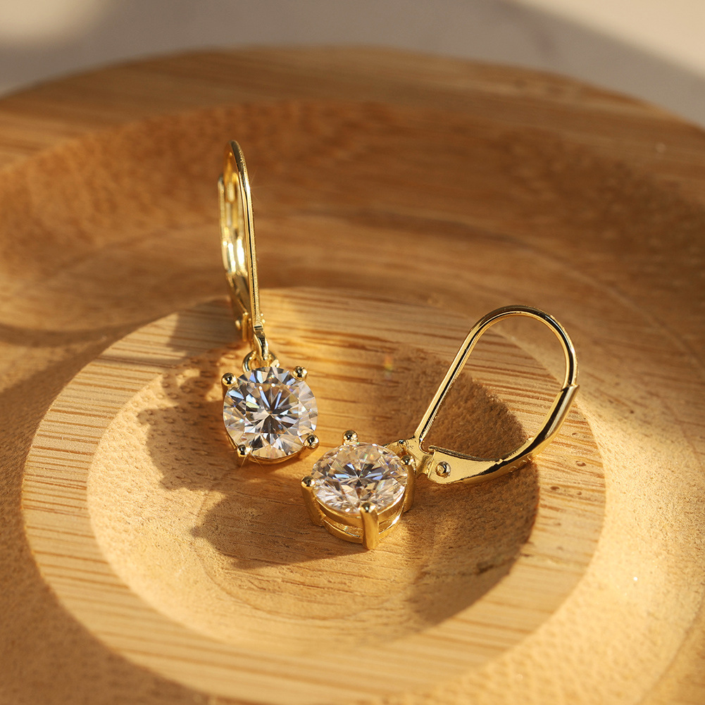 Offer your customers the perfect blend of luxury and practical design with our Wholesale 925 Sterling Silver Moissanite Leverback Drop Earrings. While traditional studs are staples, the "leverback" closure is highly sought after by consumers who prioritize security and comfort, reducing the risk of lost earring backs. This SKU elevates the classic 4-prong solitaire by turning it into a subtle drop design. Featuring premium D-Color, VVS1 Moissanite, it is available in highly strategic 0.5ct and 1ct sizes to appeal to a broad range of budgets. Available in both silver and gold plating options, this high-turnover item is a mandatory addition to "Everyday Essentials," "Bridal Gifting," and "Fine Jewelry" assortments.