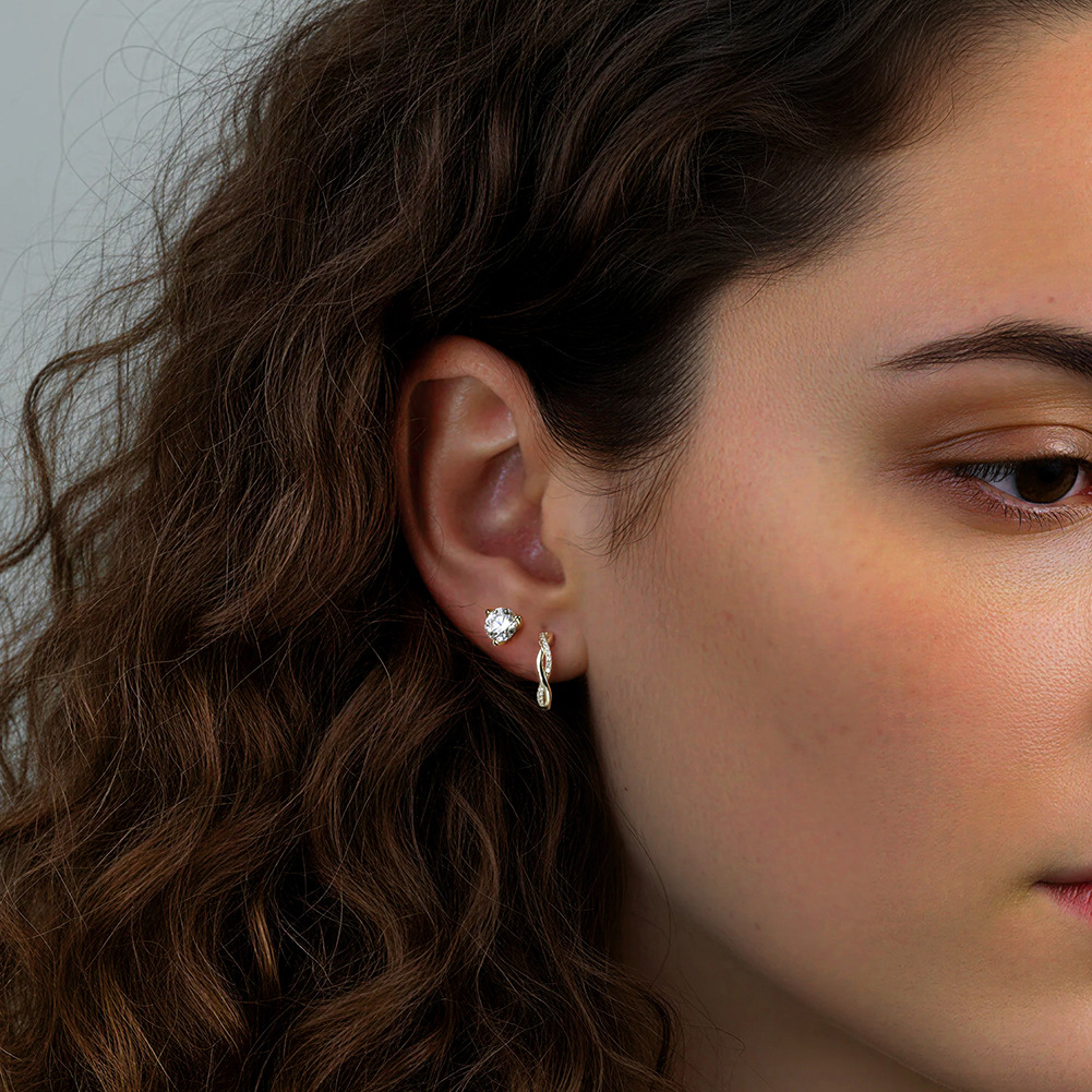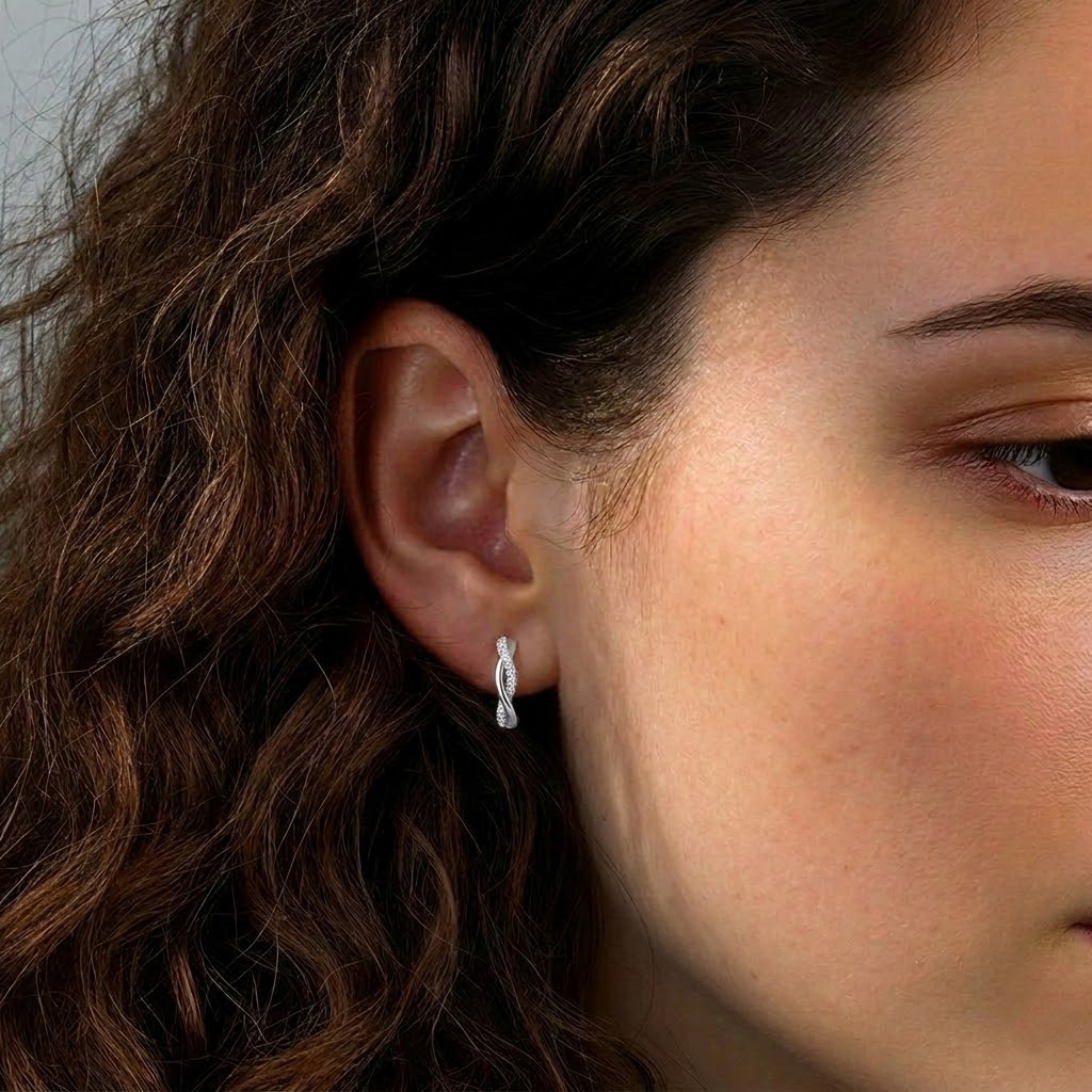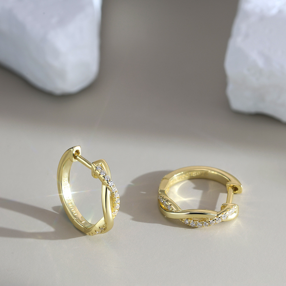 Capitalize on the highly profitable "meaningful jewelry" market with our Wholesale 925 Sterling Silver Moissanite Mobius Twist Earrings. The Mobius (or infinity twist) motif is a consistent, year-round best-seller because it translates perfectly into gifting for anniversaries, birthdays, and milestones. This SKU elevates the standard twist by incorporating a premium line of pavé-set Moissanite, giving it a high-end luxury feel while maintaining a very accessible wholesale price point. The secure huggie clasp is a massive selling point for consumers wanting low-maintenance, comfortable daily wear. Available in both essential silver and gold platings, this is a core item for any "Everyday Minimalist" or "Gifting" collection.