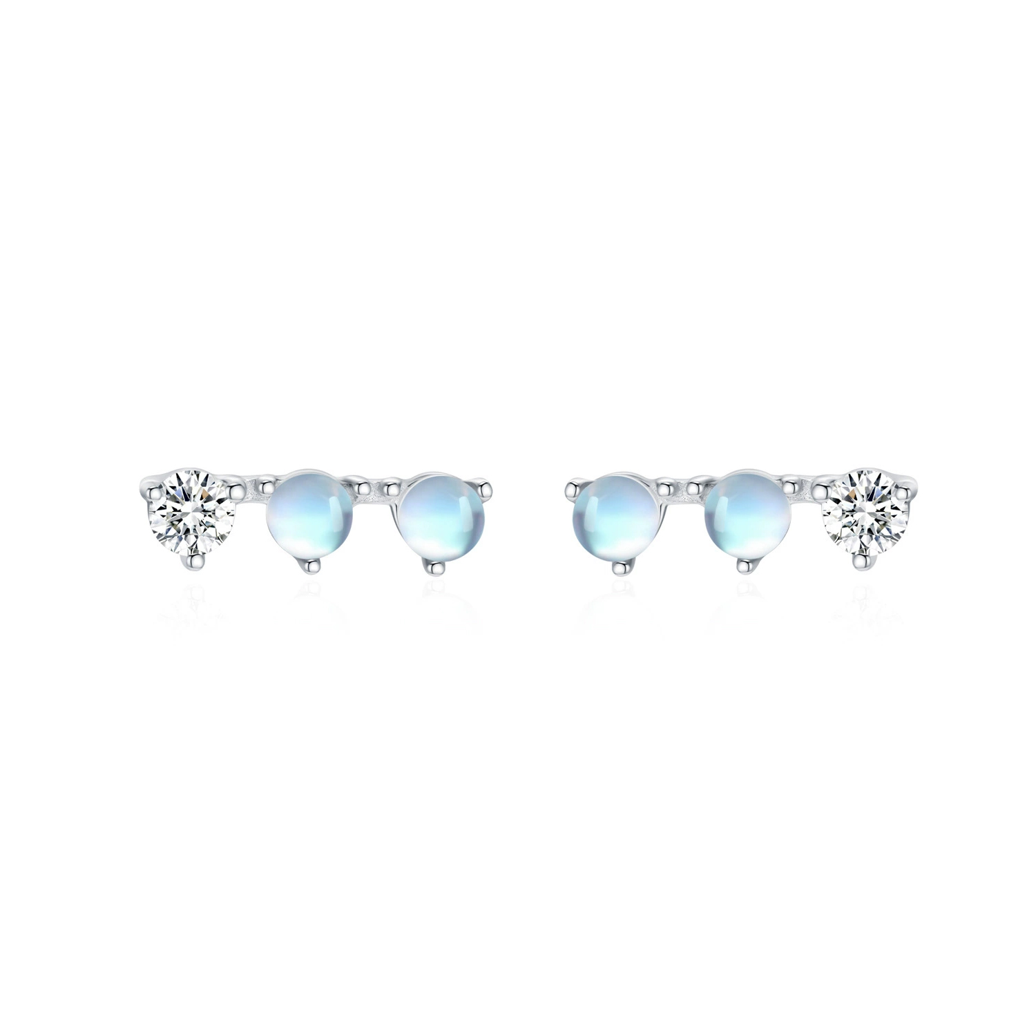 These wholesale 925 sterling silver earrings combine the soft glow of moonstones with sparkling zircon accents in a sleek bar layout. A versatile best-seller for jewelry retailers, their modern simplicity appeals to customers seeking delicate, feminine styles. Ideal for fashion boutiques, gift collections, or online jewelry shops.