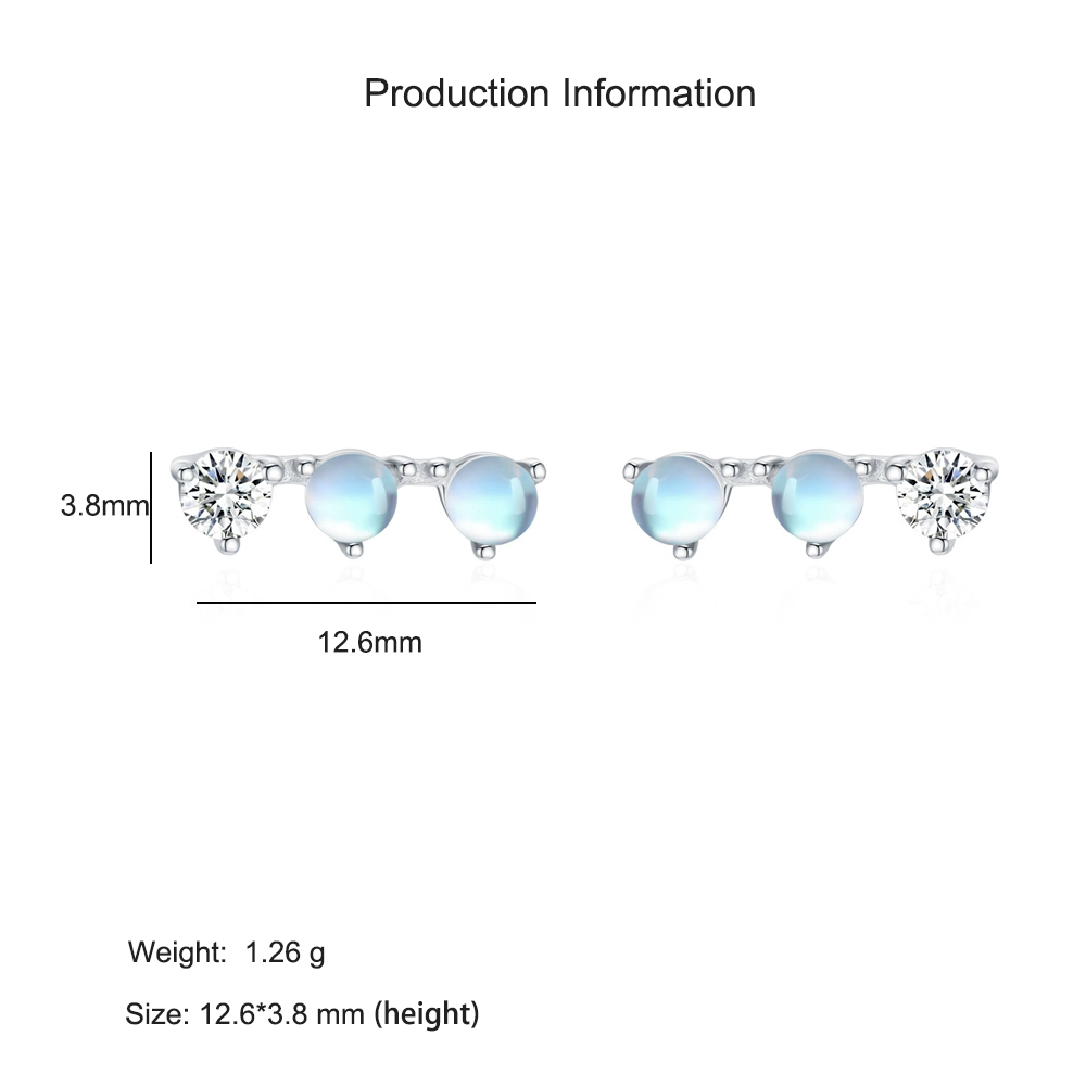 Gracefully minimalist, these 925 sterling silver bar earrings feature luminous moonstones paired with sparkling white zircon stones. The clean, linear design creates a refined silhouette that captures light with every movement. Perfect for women who love understated elegance, these studs add a modern, celestial touch to both everyday wear and evening outfits.