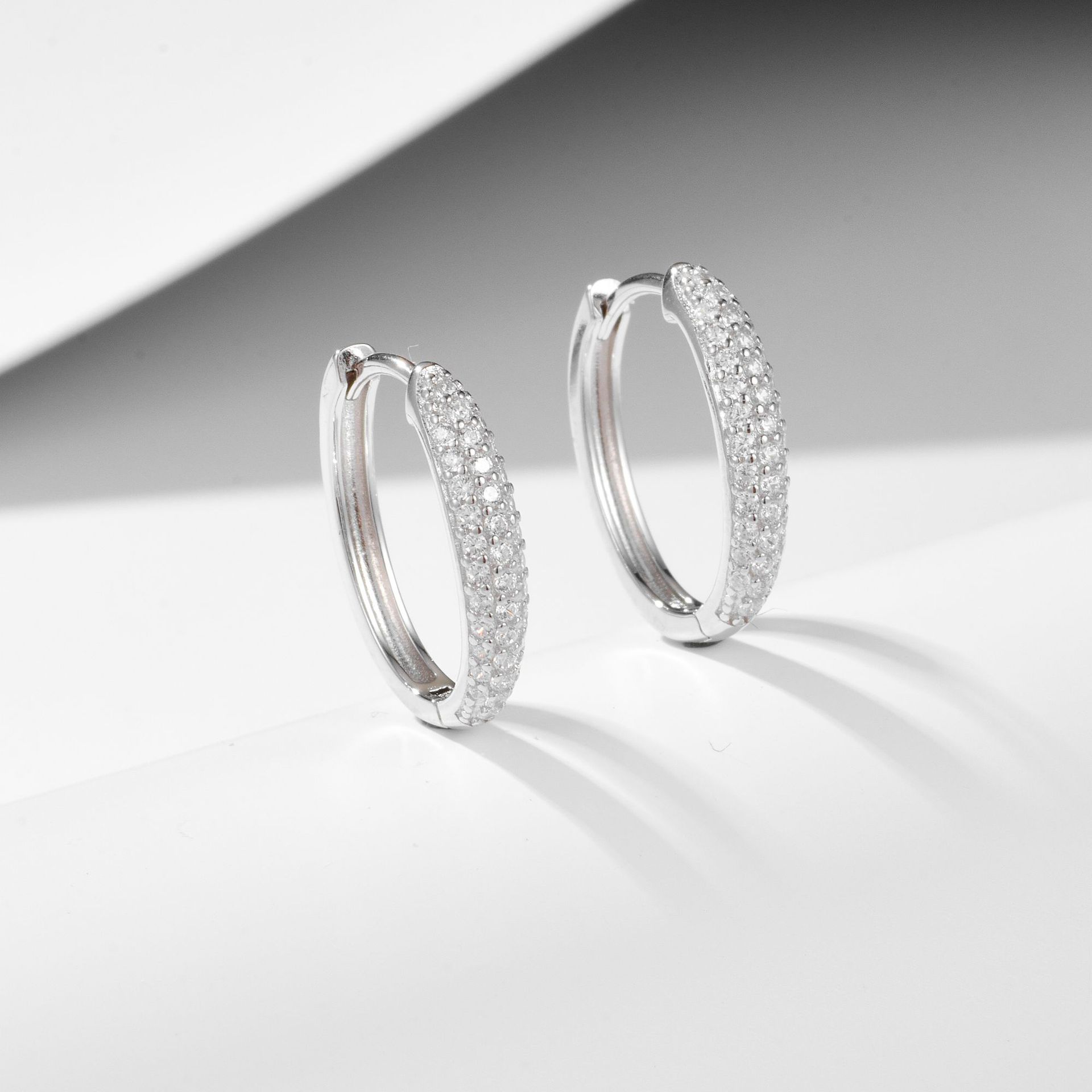 Offer your customers the look of high jewelry with our Wholesale 925 Sterling Silver Multi-Row Micro Pave CZ Hoops. This SKU utilizes "Micro-Setting" technology to place multiple rows of Cubic Zirconia closely together, maximizing brilliance and perceived value. The "Triple Row" design is a classic "Eternity" style that appeals to customers seeking glamour for special occasions or daily elegance. Manufactured from solid S925 sterling silver, these hoops are a premium addition to any collection.