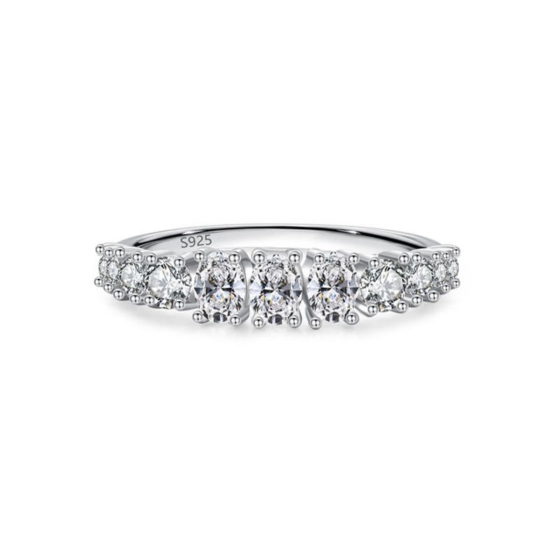 These wholesale 925 sterling silver zircon stacking rings feature rows of high-quality cubic zirconia stones for a brilliant shine. Crafted from premium S925 silver, each ring offers a smooth, polished finish and lasting comfort. The elegant multi-stone design makes them versatile for pairing with engagement rings, wedding bands, or minimalist collections. Ideal for jewelry retailers and online stores seeking best-selling stacking rings with refined sparkle.
