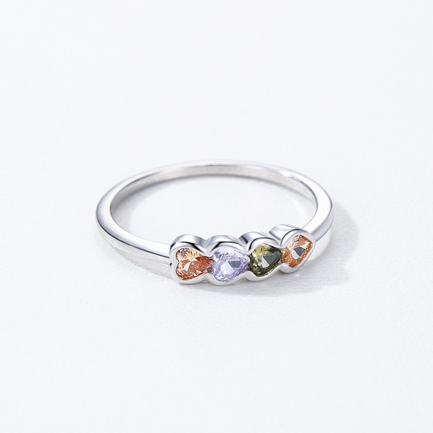 925 Sterling Silver Multicolor Heart Zircon Ring 70300098