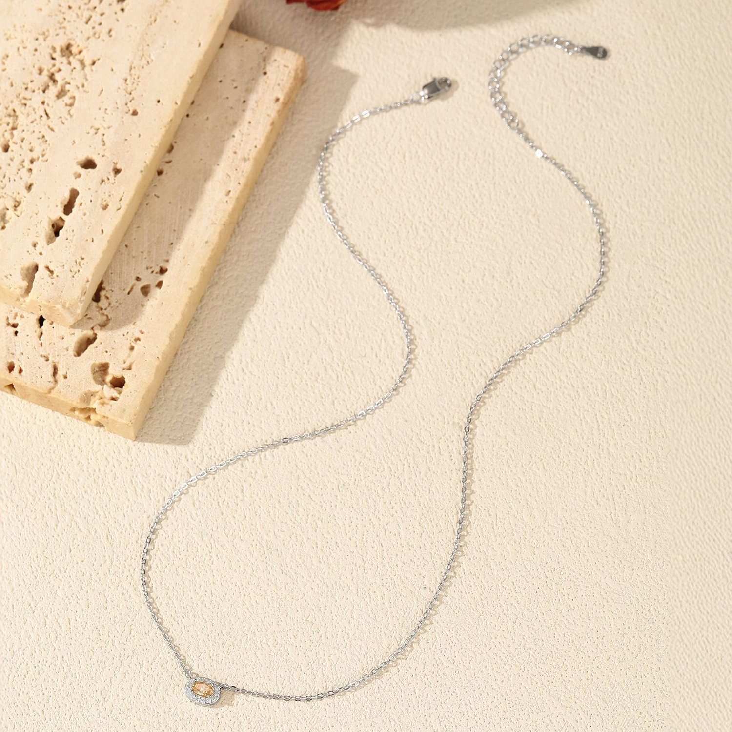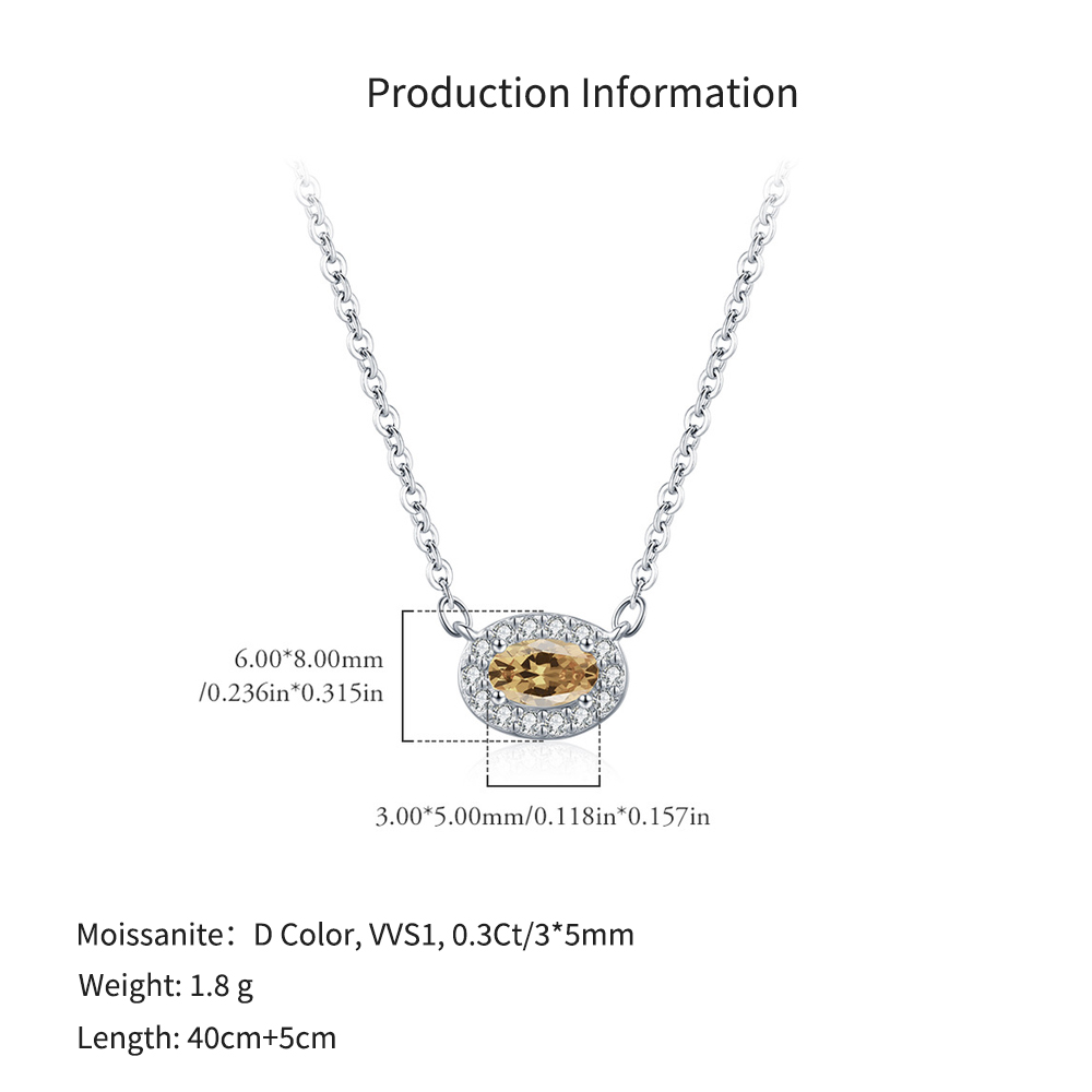 925 Sterling Silver Oval Champagne Moissanite Halo Pendant Necklace 110300025