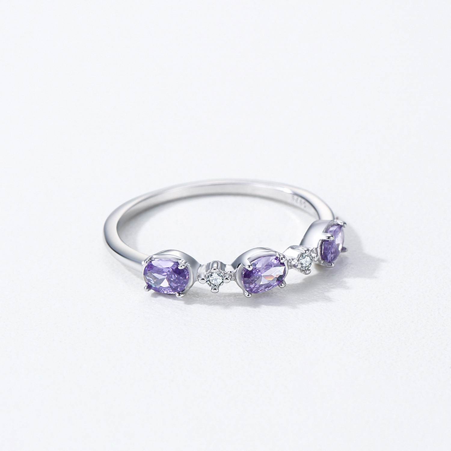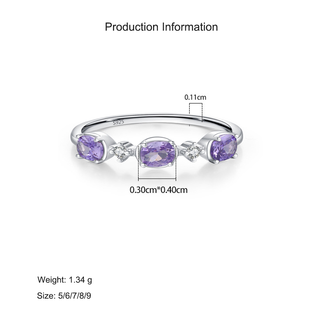 Delicate and refined, this 925 sterling silver ring features a harmonious blend of violet and white zircon stones that sparkle with every movement. The oval-cut purple zircons symbolize creativity and grace, beautifully accented by shimmering white stones for added brilliance. Crafted from genuine S925 silver, this hypoallergenic ring offers lasting shine and comfort. Perfect for women who love feminine elegance — ideal for daily wear, romantic gifts, or stacking with other fine jewelry.