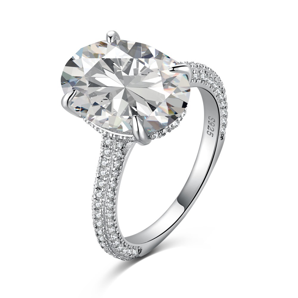 925 Sterling Silver Oval Solitaire Pave Ring 70200397