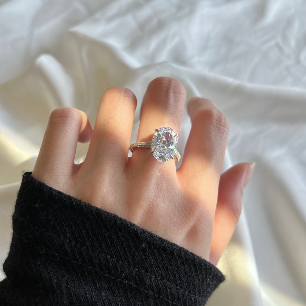 Command premium price points in your bridal and luxury categories with our Wholesale 925 Silver Oval Solitaire Pave Ring. The oval cut is a massive retail driver, offering a highly flattering silhouette and incredible perceived carat size. This spectacular SKU features a flawless, large-carat oval zircon set on a delicate silver band elevated by micro-pave accents and intricate milgrain detailing. Crafted from hypoallergenic S925 silver, it delivers incredible, fine-jewelry-level perceived value and substantial presence. A mandatory, high-margin anchor for your "Bridal Alternatives" and "Statement Rings" assortments.