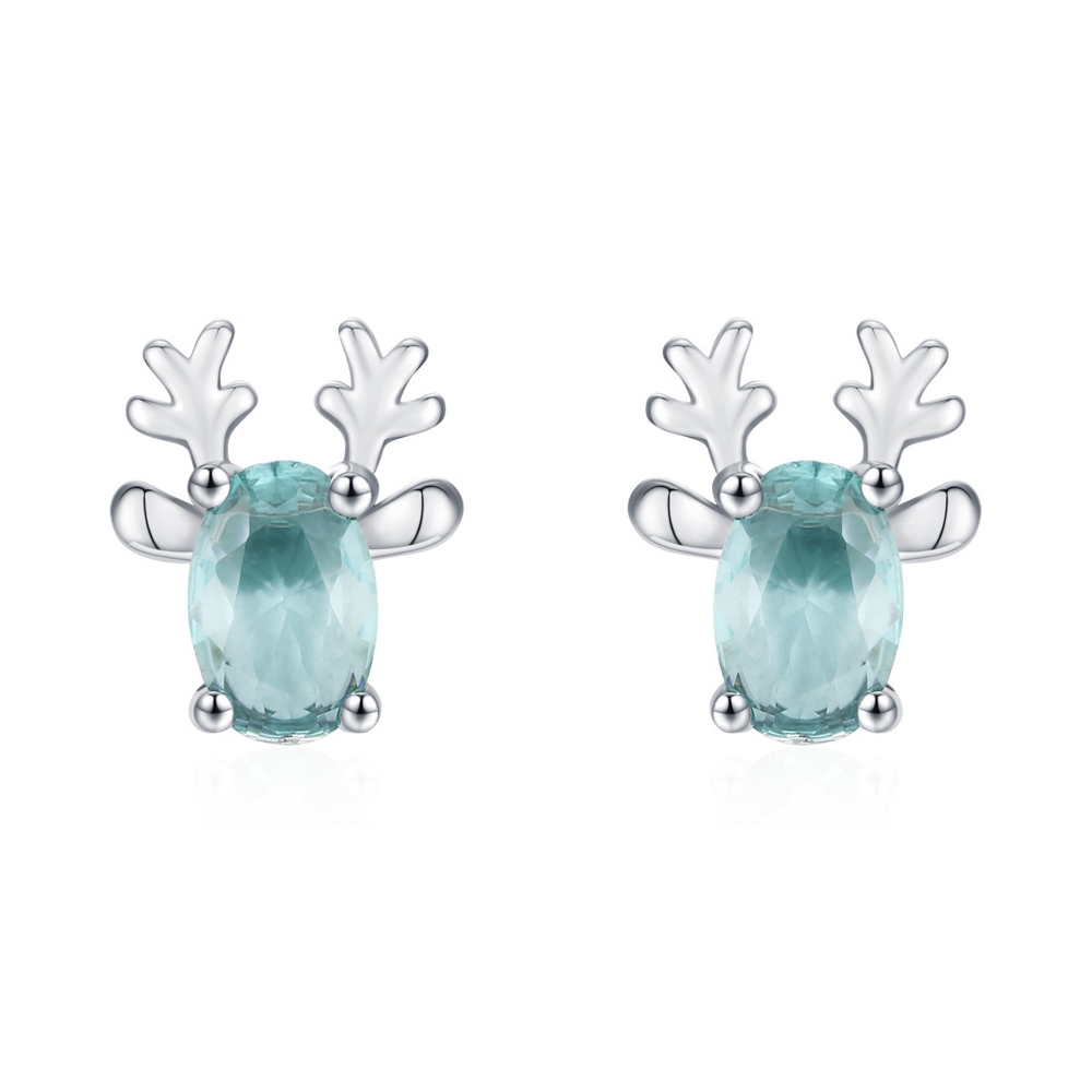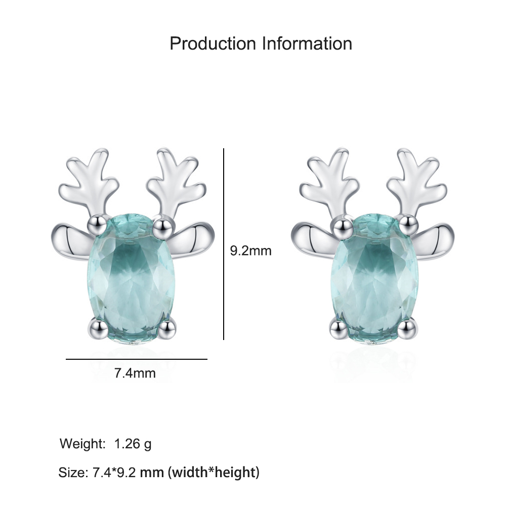 925 Sterling Silver Paraiba Blue Christmas Reindeer Stud Earring 40200647 - image1925 Sterling Silver Paraiba Blue Christmas Reindeer Stud Earring 40200647 - image2
