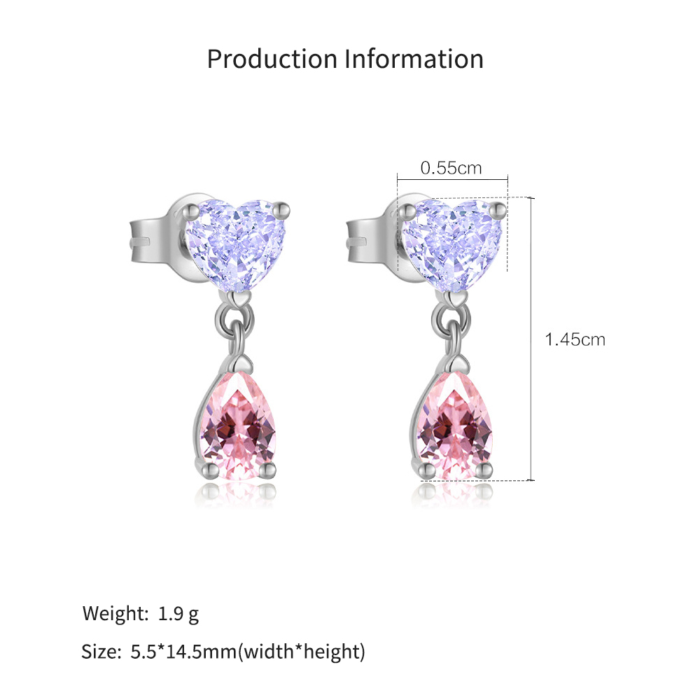 Maximize your romantic gifting sales with our Wholesale 925 Sterling Silver Pastel Heart Drop Studs. Two-tone pastel jewelry and sweet feminine motifs are high-converting retail drivers. This SKU features a highly commercial pairing: a light lavender heart-cut top stone suspending a vibrant pink pear-cut drop. Available in gold and silver finishes, these hypoallergenic S925 earrings offer secure push-back closures and exceptional boutique-level perceived value. A fast-turning, high-margin anchor for your "Romantic Gifting" and "Spring Essentials" collections.