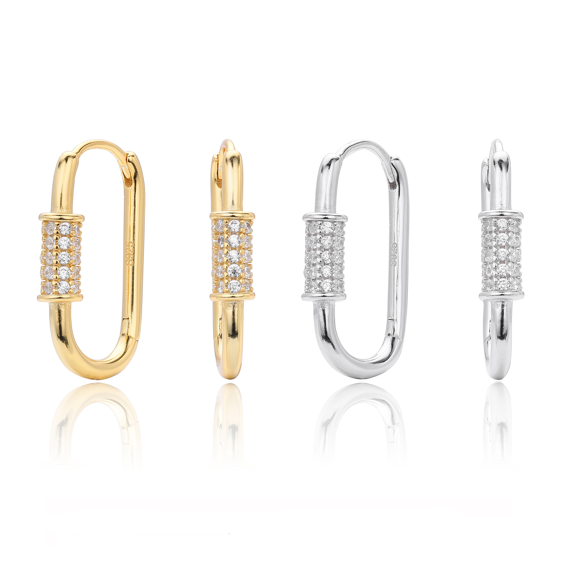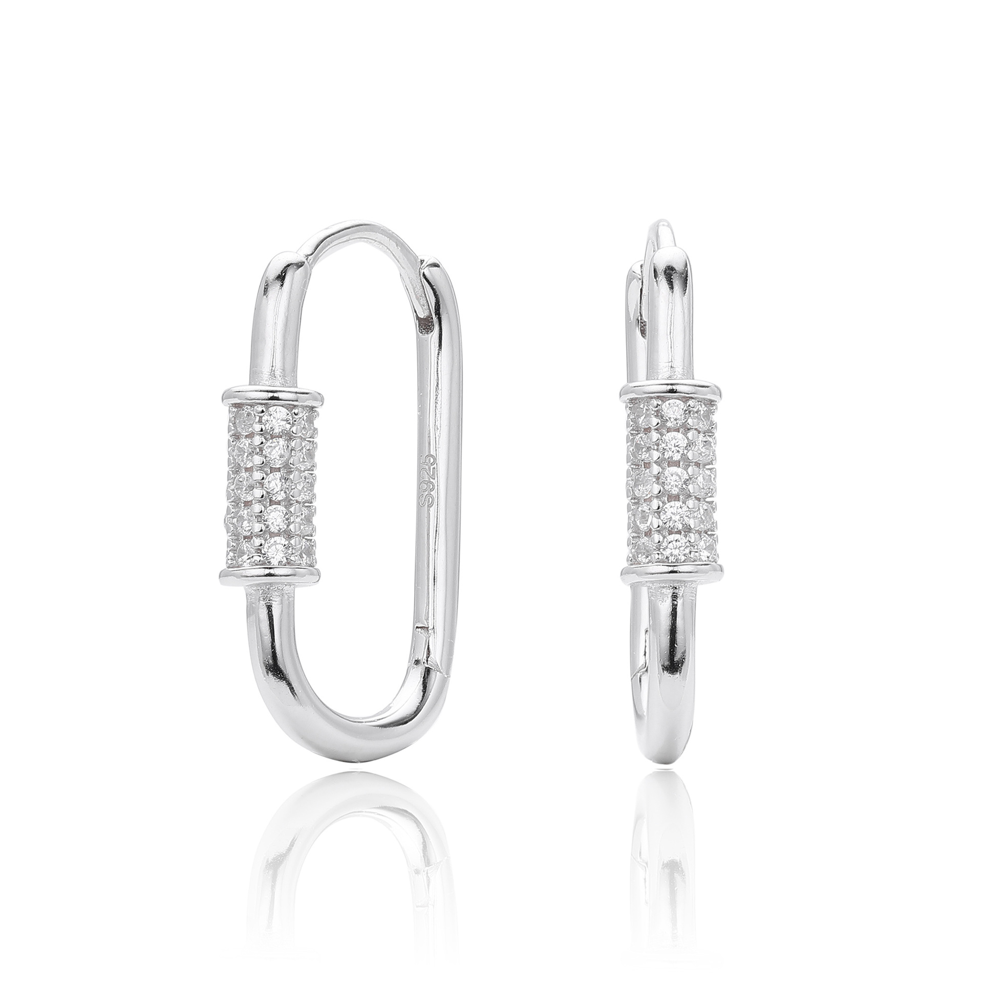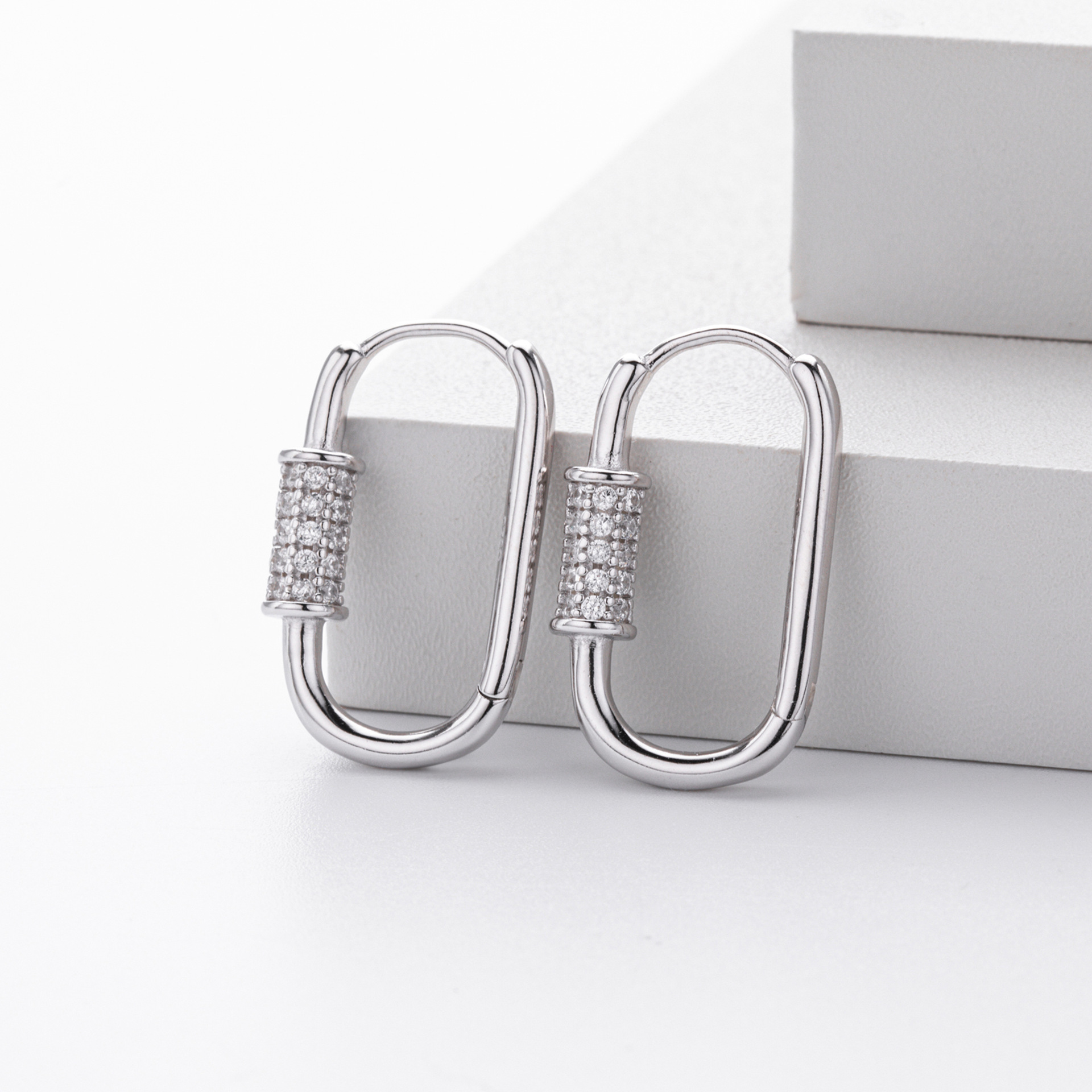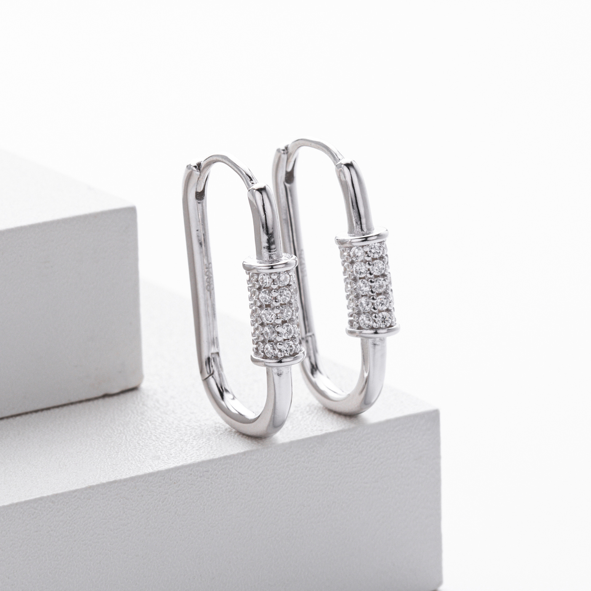 Tap into the "Hardware Jewelry" trend with our Wholesale 925 Sterling Silver Pave Accent Carabiner Hoops. The "Paperclip" and "Carabiner" link styles remain top-sellers in the fashion jewelry market. This SKU elevates the industrial form with a luxurious "Pave Setting" detail, creating a piece that bridges the gap between edgy streetwear and fine jewelry. Manufactured from solid S925 sterling silver, these hinged hoops offer a high-quality, trendy option for fashion-forward retailers.