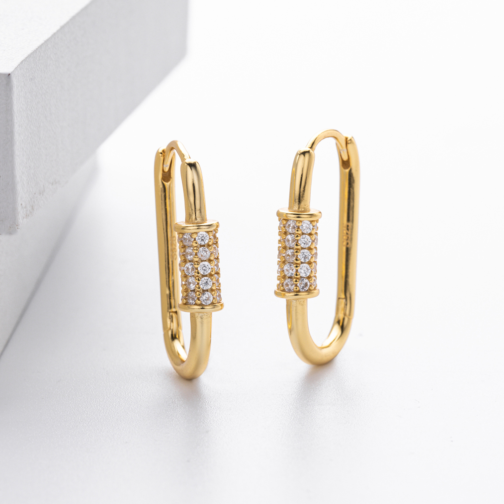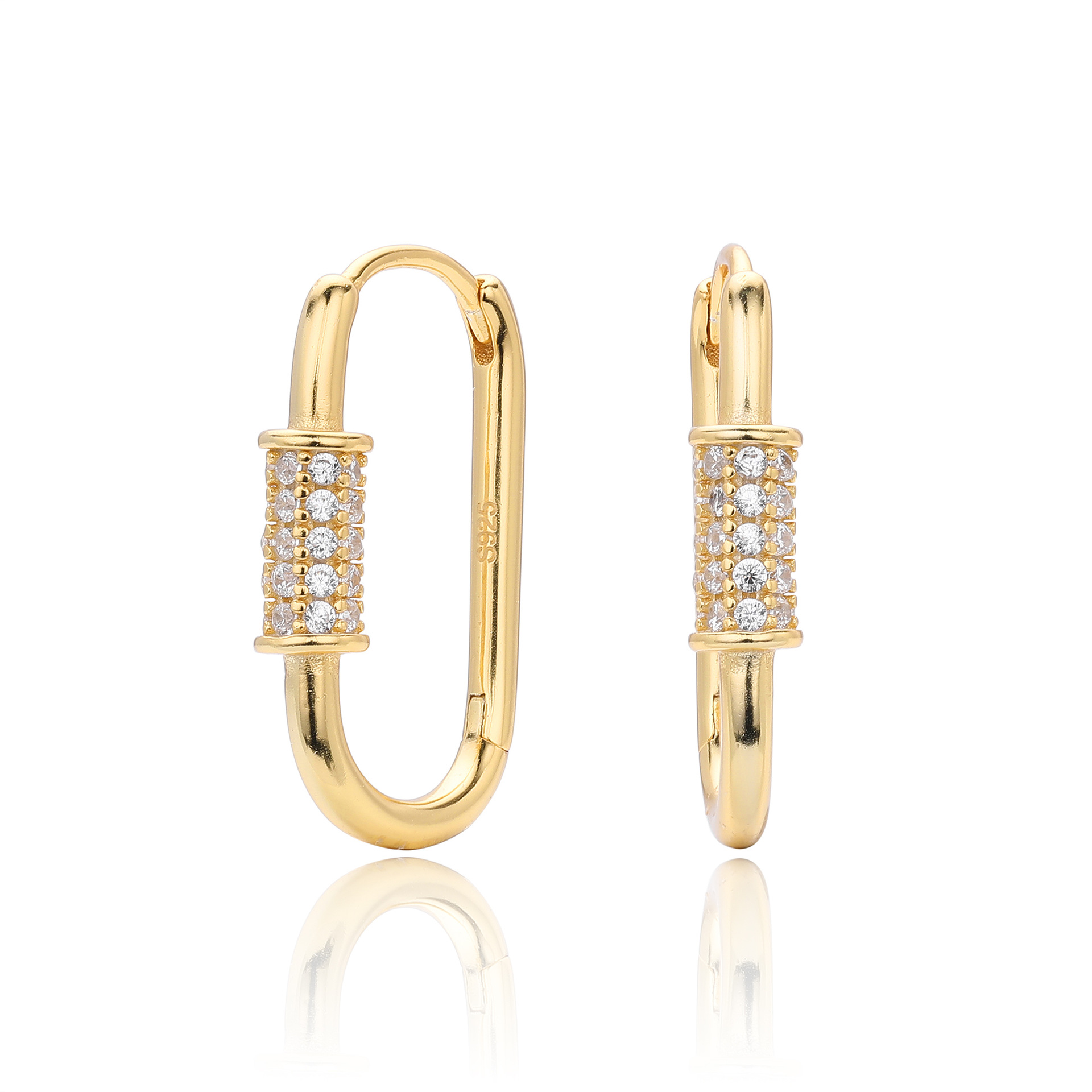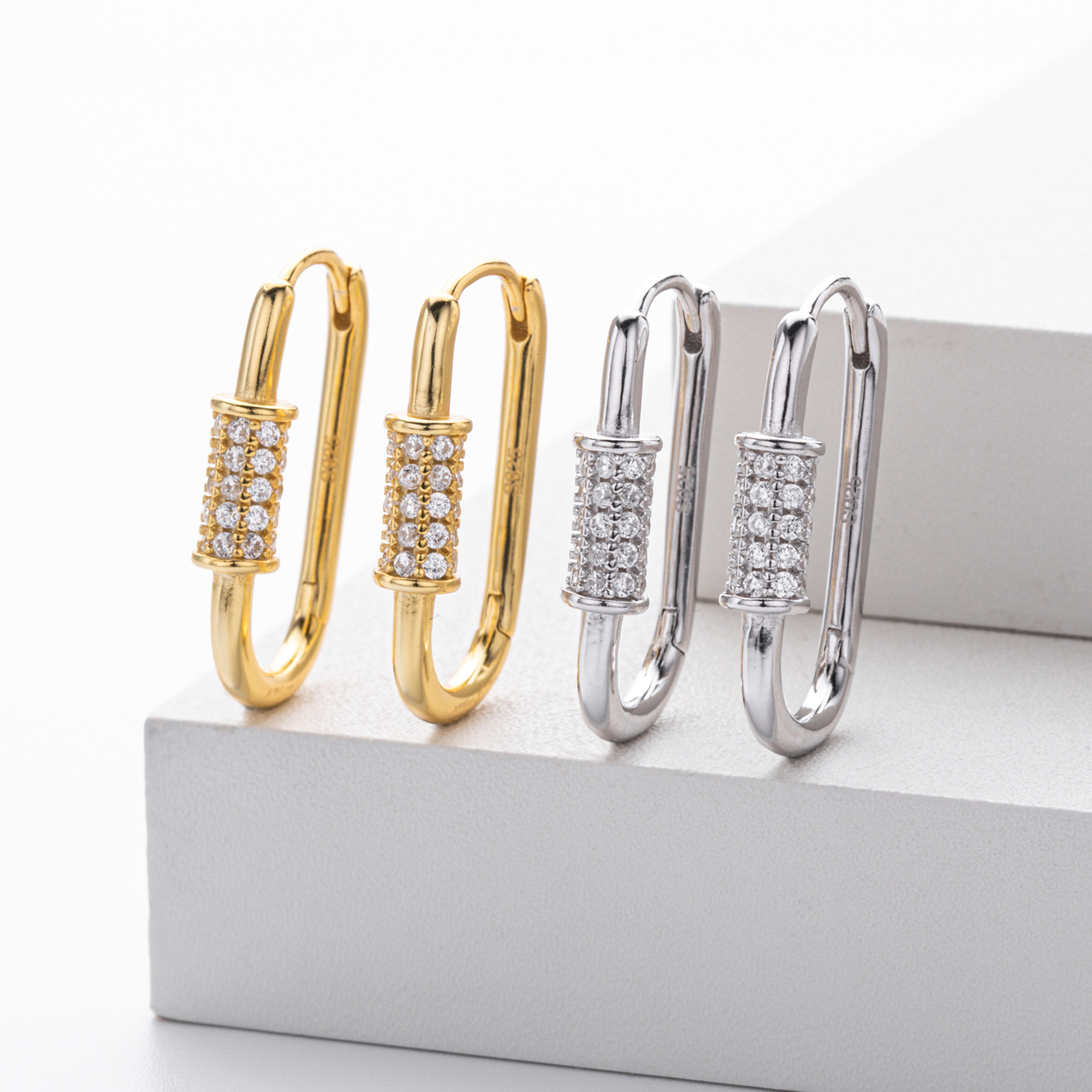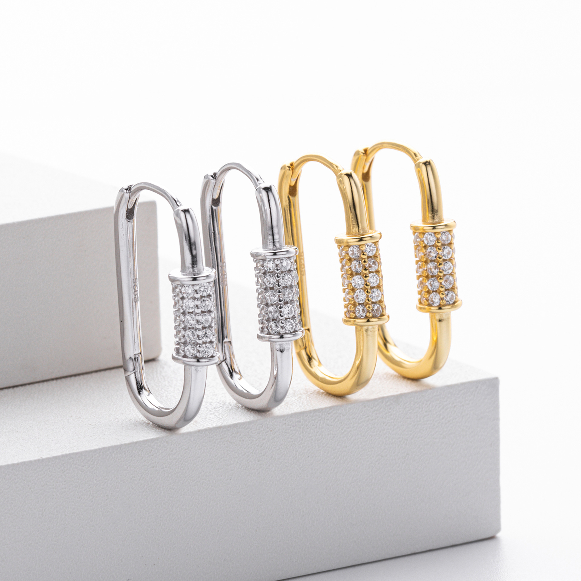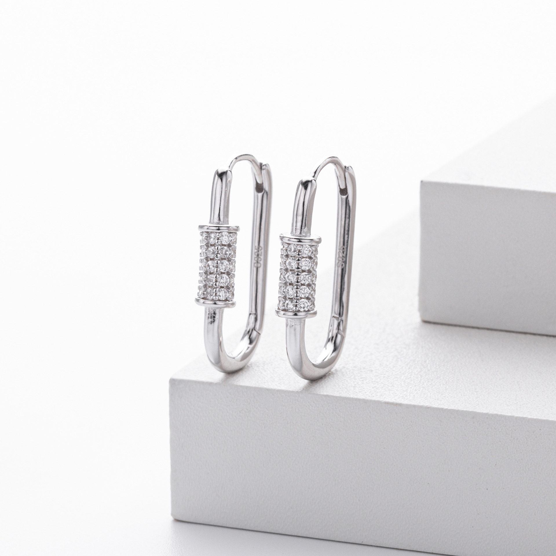 Tap into the "Hardware Jewelry" trend with our Wholesale 925 Sterling Silver Pave Accent Carabiner Hoops. The "Paperclip" and "Carabiner" link styles remain top-sellers in the fashion jewelry market. This SKU elevates the industrial form with a luxurious "Pave Setting" detail, creating a piece that bridges the gap between edgy streetwear and fine jewelry. Manufactured from solid S925 sterling silver, these hinged hoops offer a high-quality, trendy option for fashion-forward retailers.