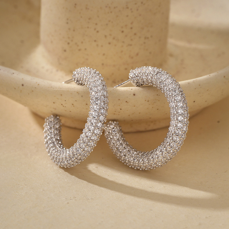 Source a reliable, high-sparkle inventory item with our 925 Sterling Silver Pave CZ C-Hoop Earrings. This design is a proven bestseller, combining the ever-popular C-hoop silhouette with the high-appeal, brilliant pave CZ setting. The strong, continuous sparkle and classic geometric (几何) shape ensure high demand across all retail markets. Crafted from authentic S925 sterling silver, this piece offers high perceived value and reliable quality. These are essential, fast-selling staple pieces for bulk purchase. Available for competitive wholesale pricing.