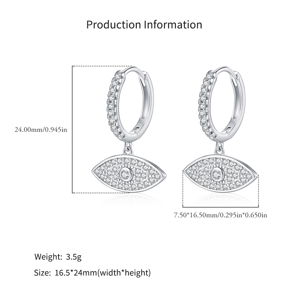 925 Sterling Silver Pave CZ Evil Eye Hoop Earrings 60300219